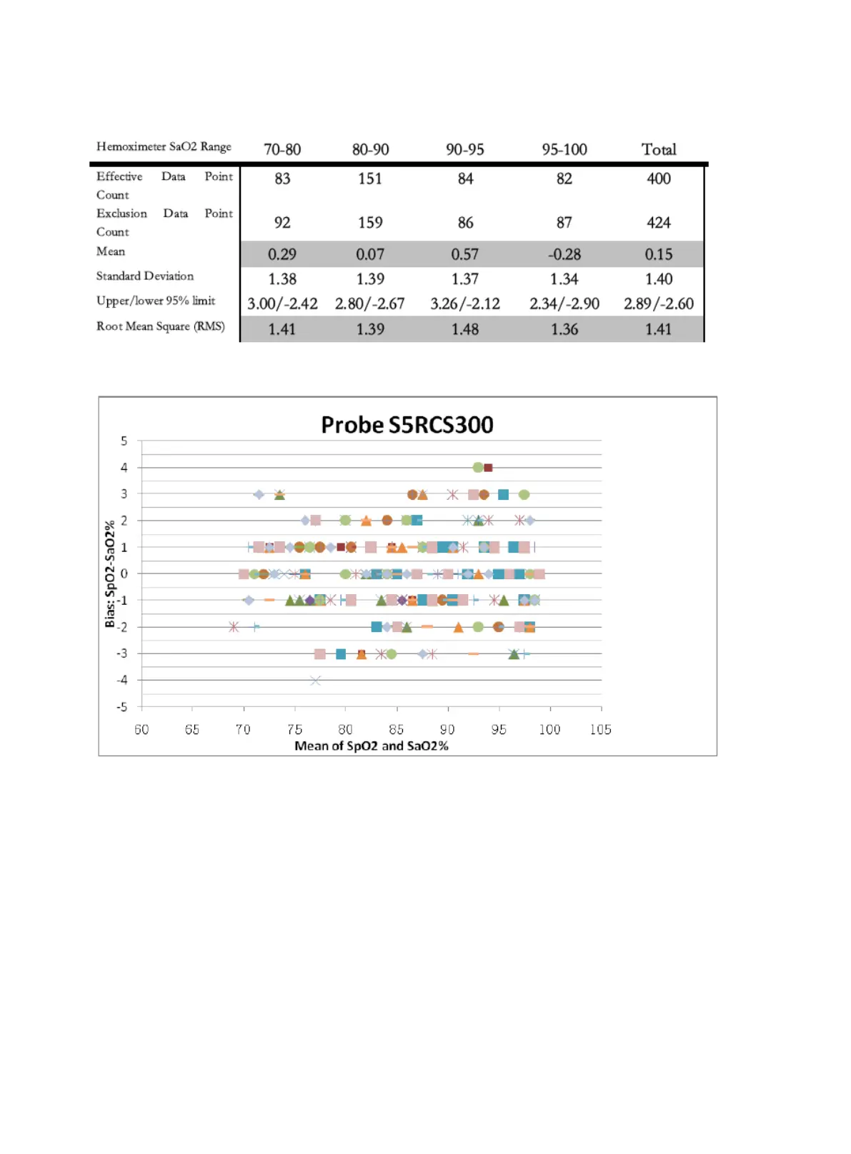 La tabella seguente mostra i valori di ARMS misurati utilizzando il sensore SpO