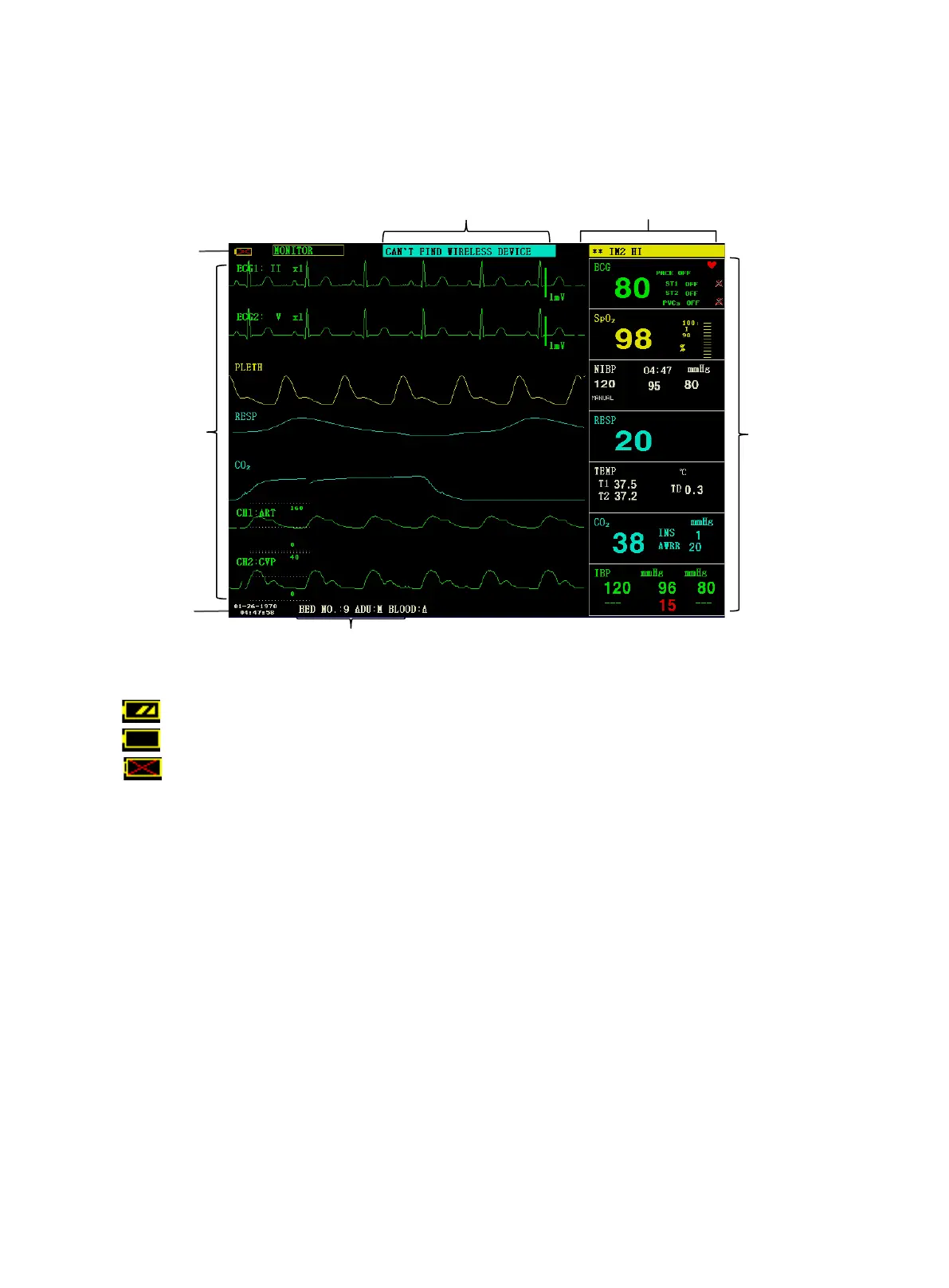 waveforms of the patient. The following figure is a standard interface in normal monitoring state.