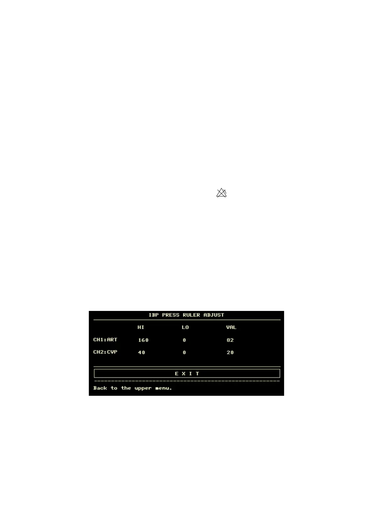 n SCALE ADJUST: select it to enter "IBP PRESS RULER ADJUST" menu, in which the user may adjust the