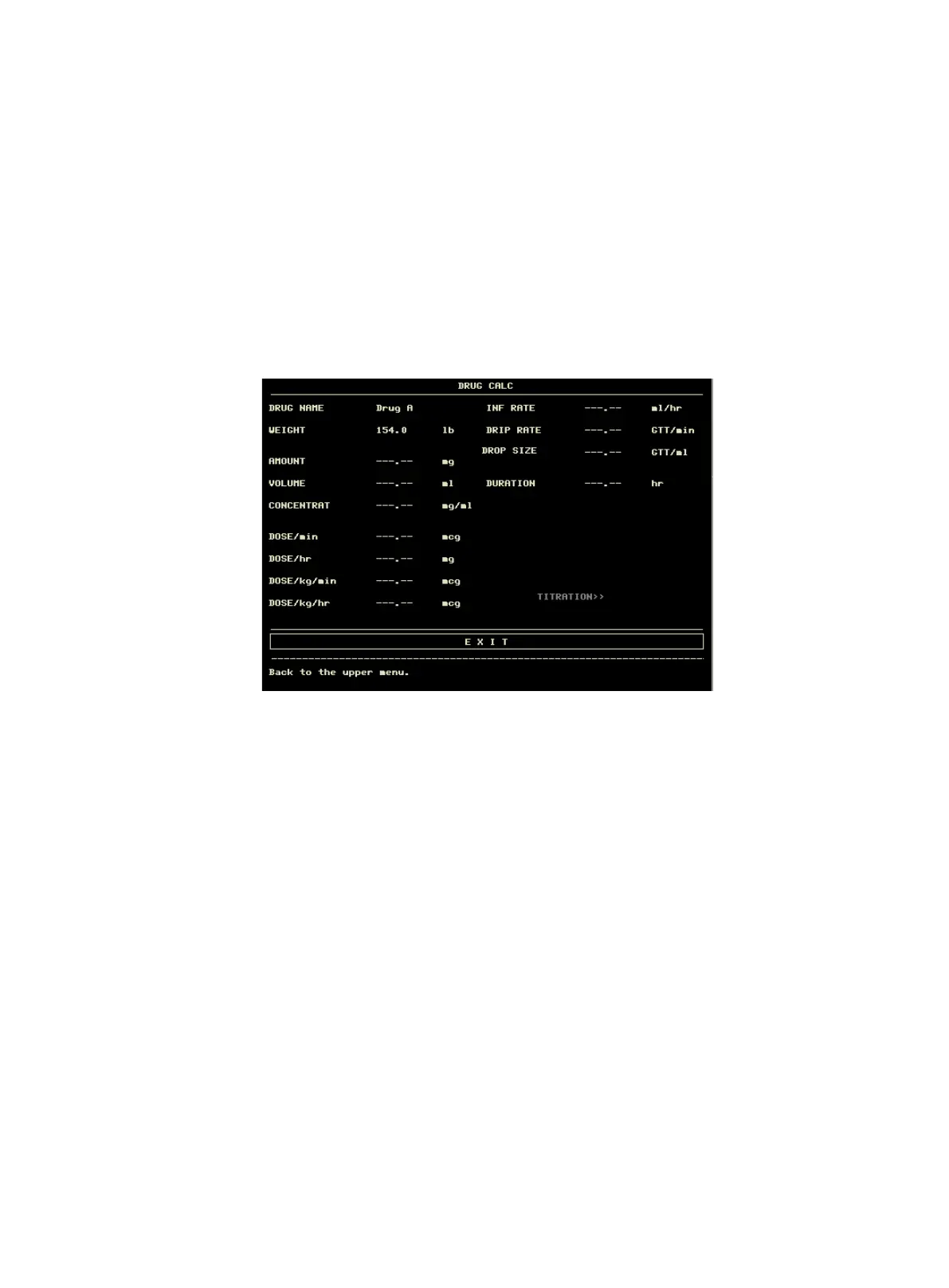 Selezionando "DRUG CALC" in SYSTEM MENU, apparire la seguente interfaccia: