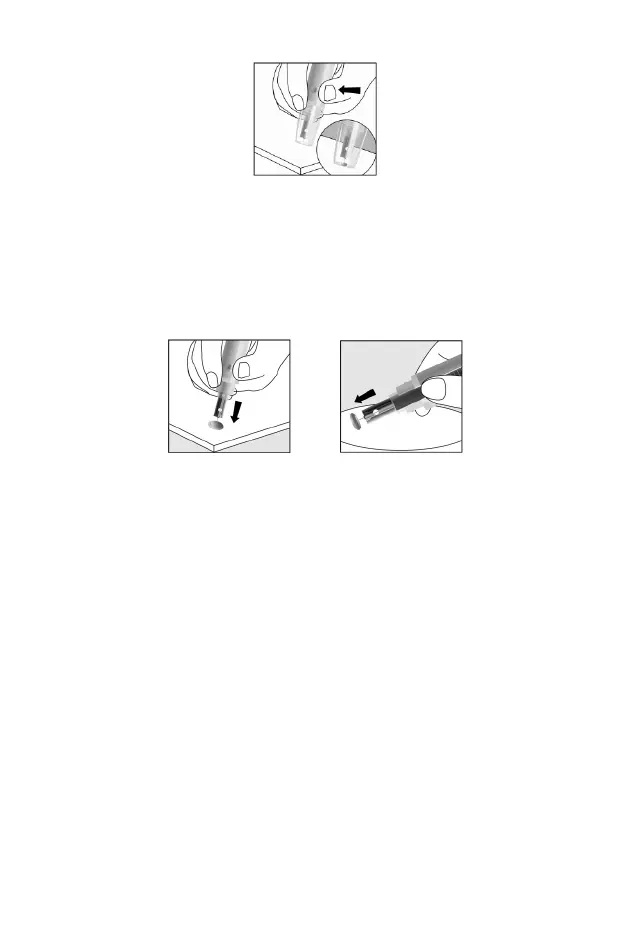 surface. Then carefully insert the lancet needle into the safety tab.