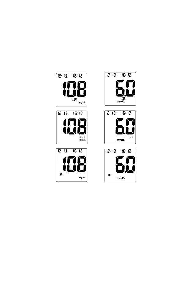 “before meal marker”, “after meal marker”, “invalid result” with pound sign (#)
