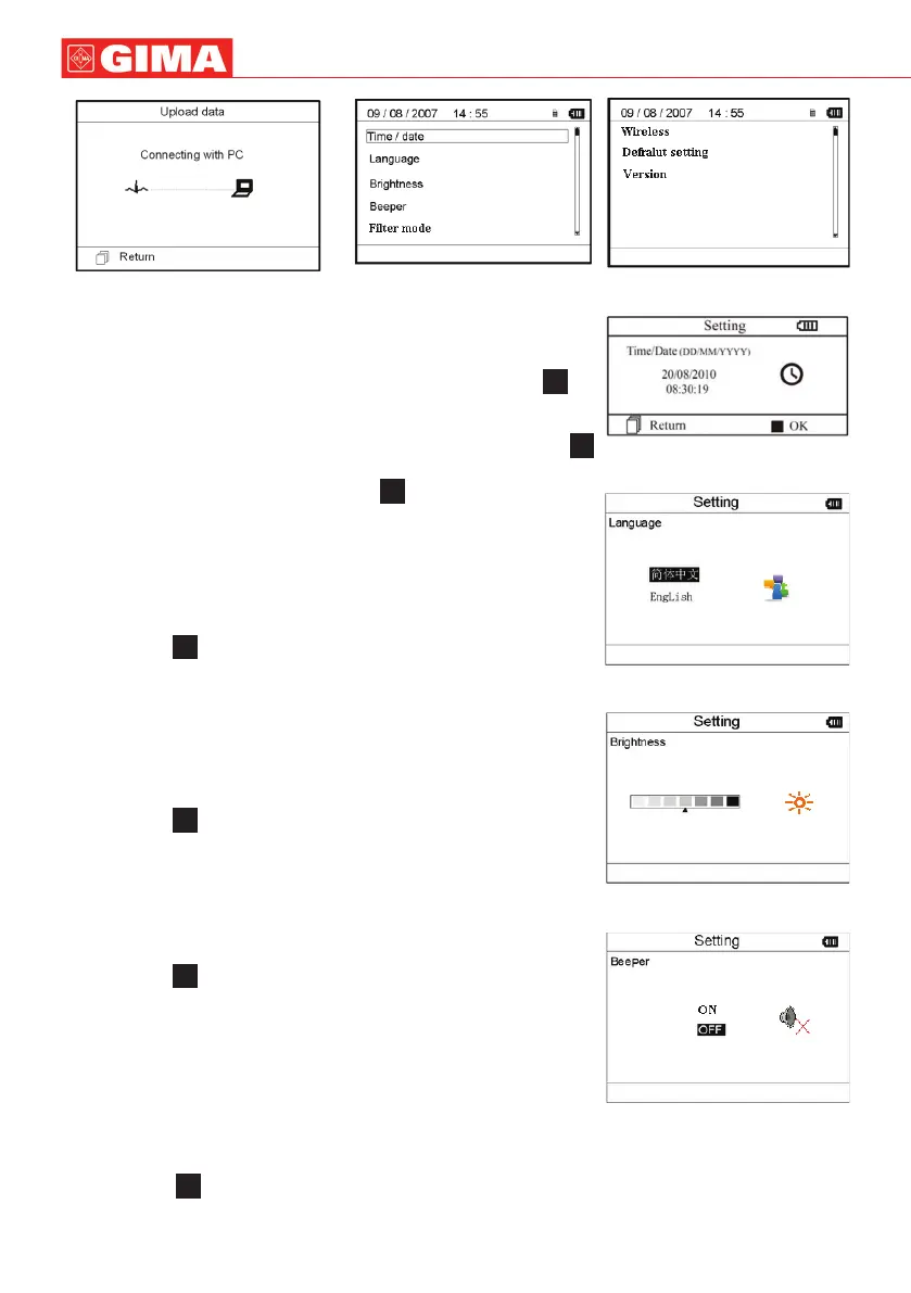 1. Sur la page écran de réglage des paramètres, sélectionner « Time/date »