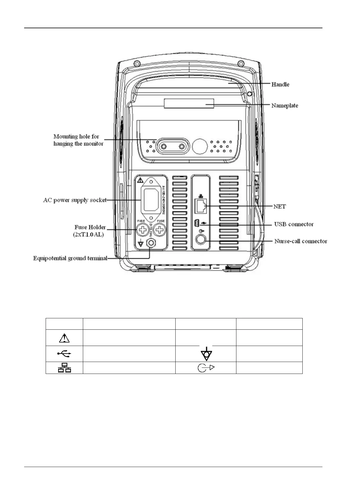 The rear panel of the monitor is as shown in figure 3.4.