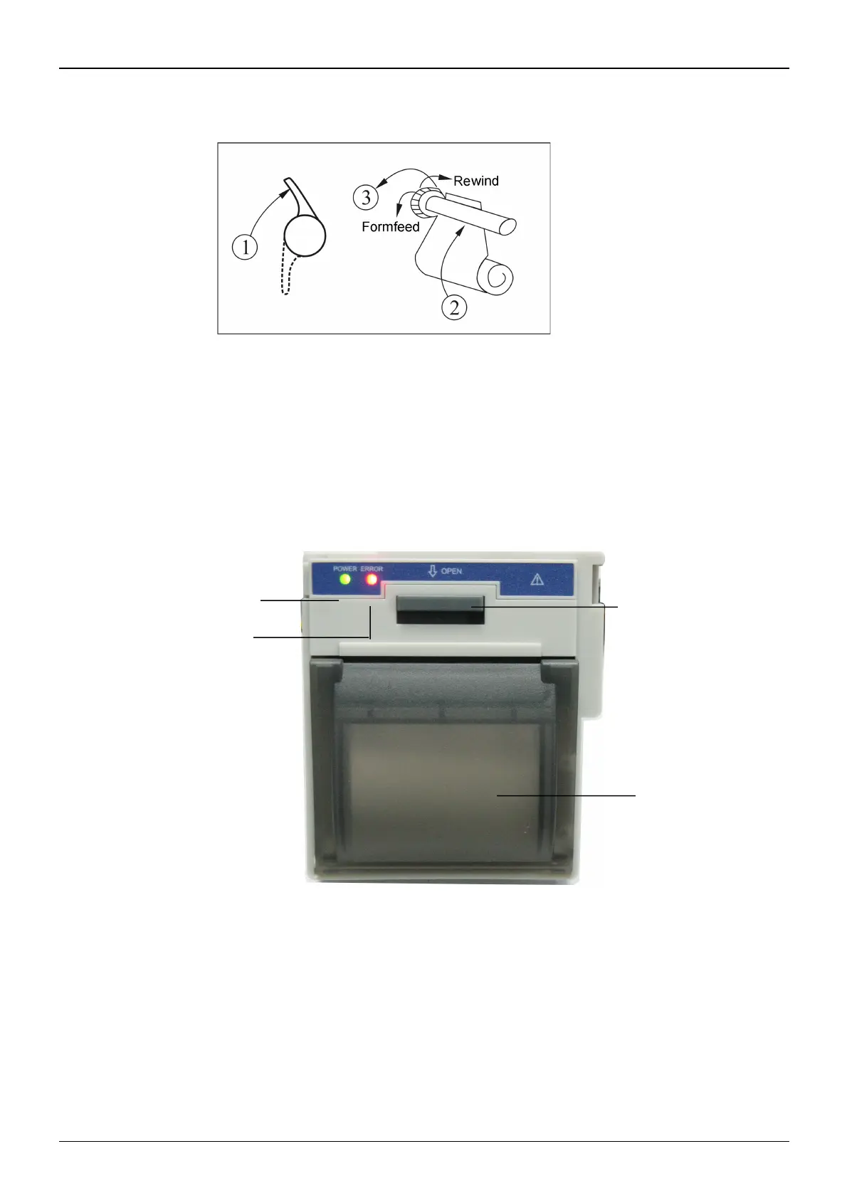 Error indicator: red light which shows the printer is out of paper or the printer paper is not properly installed. When the