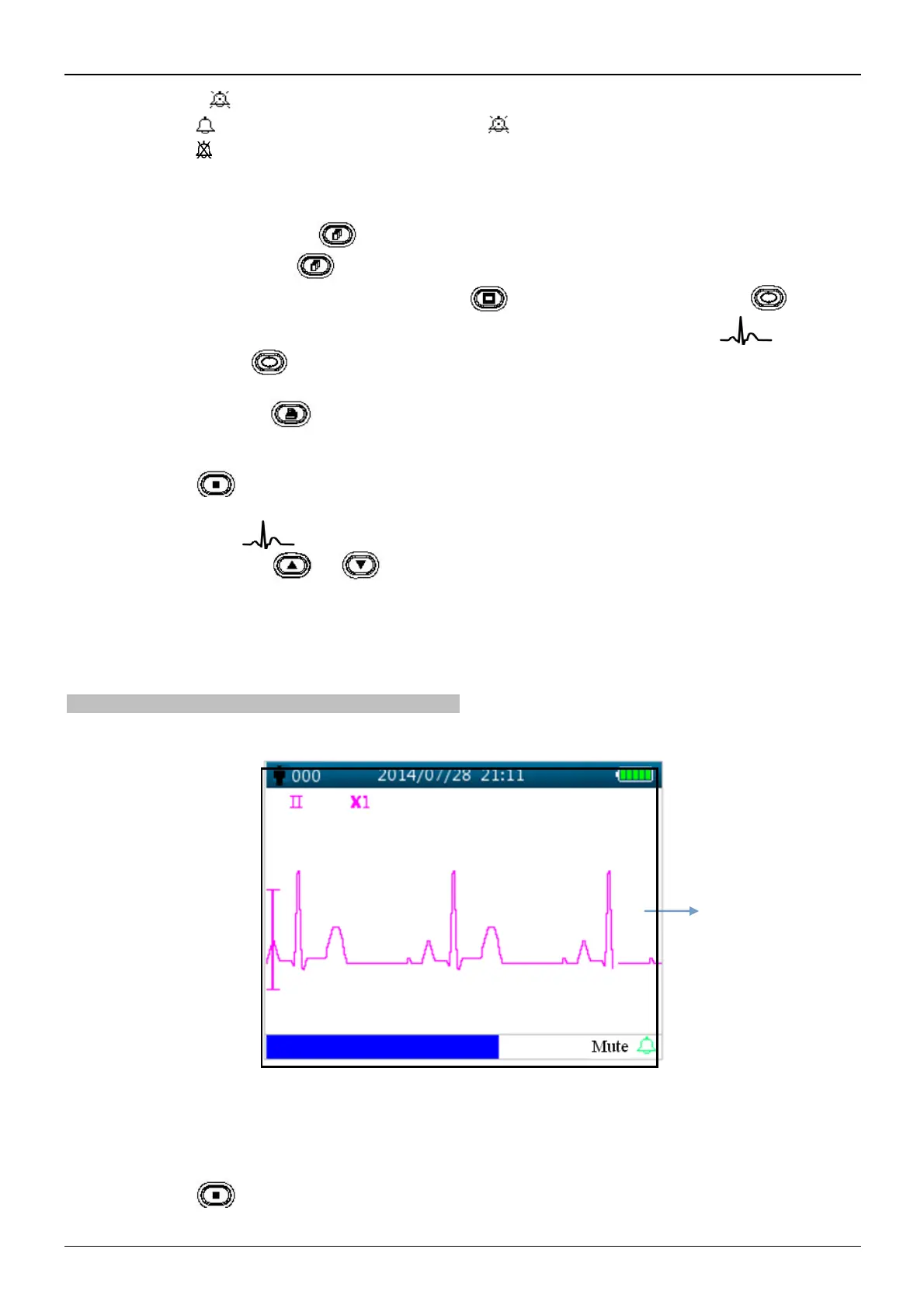 Ø Short pressing Up/Down(" " / " " ) key to change ECG waveform gain.