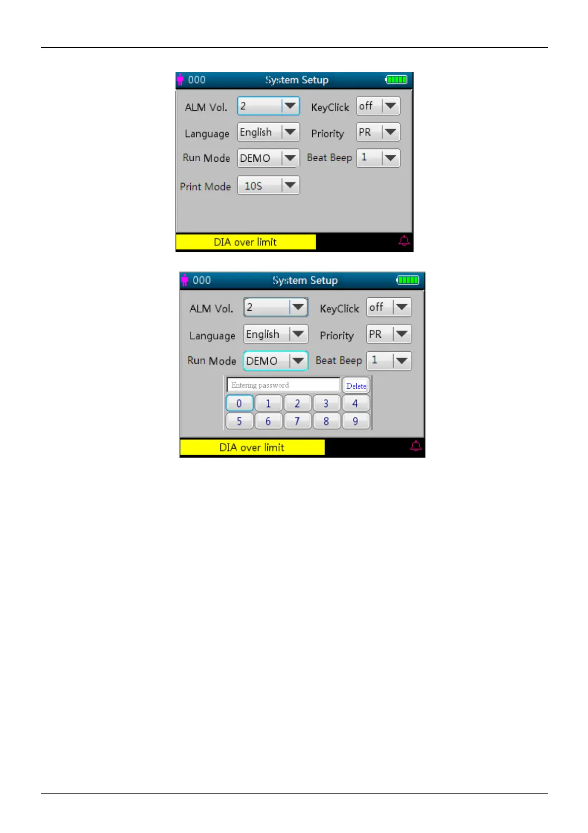 “Demo” shows a demonstration waveform and data, which are generated by the monitor.