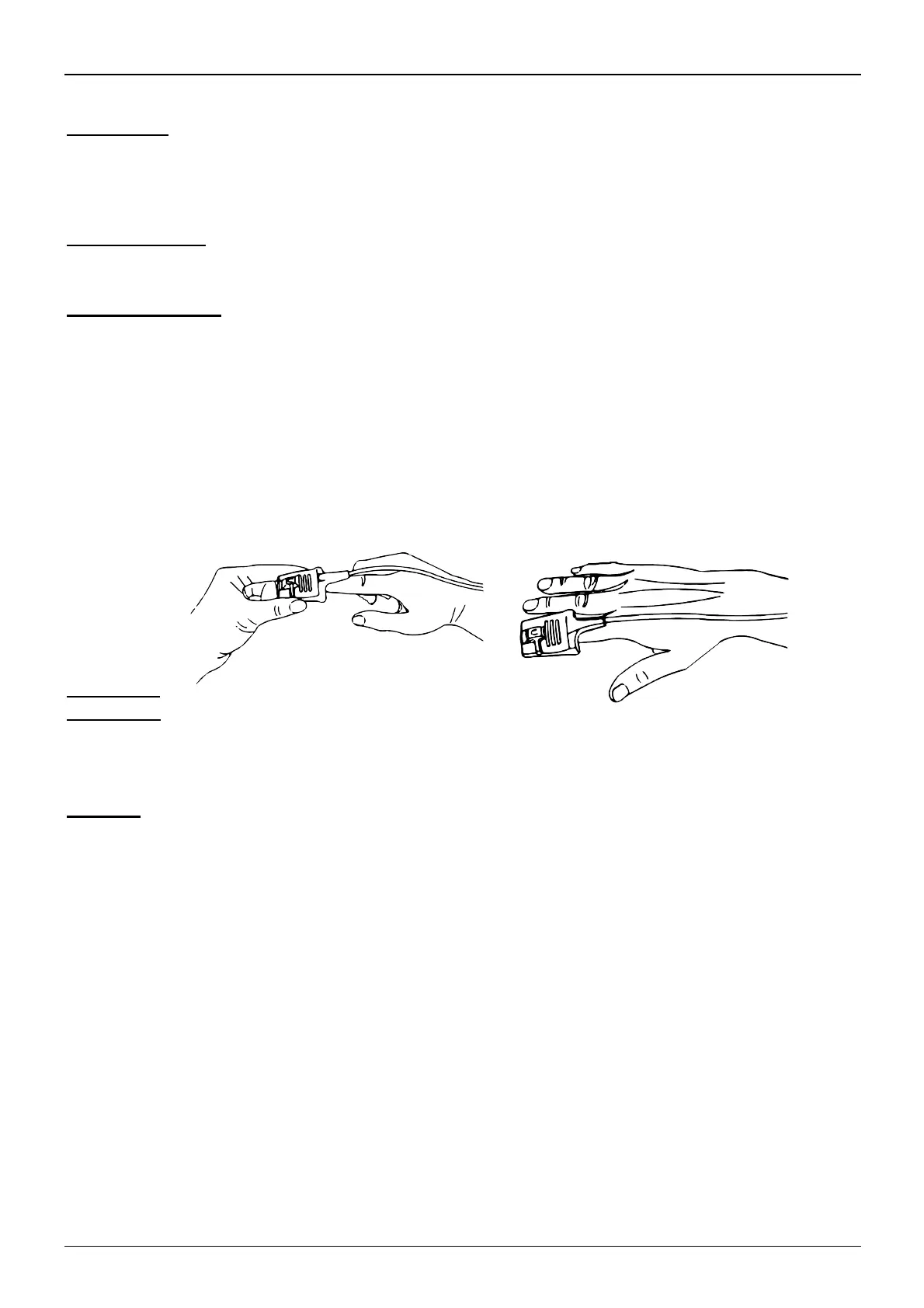 4) Do not use NIBP or other constructing instruments on same appendage as sensor for blood flow interrupted by