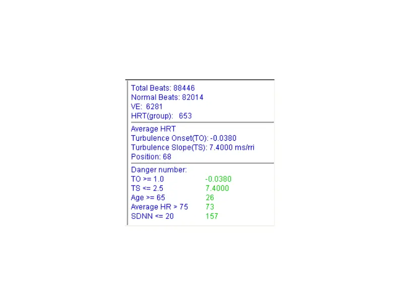 The three row number below graph express the RR interval the maximal value, the average and