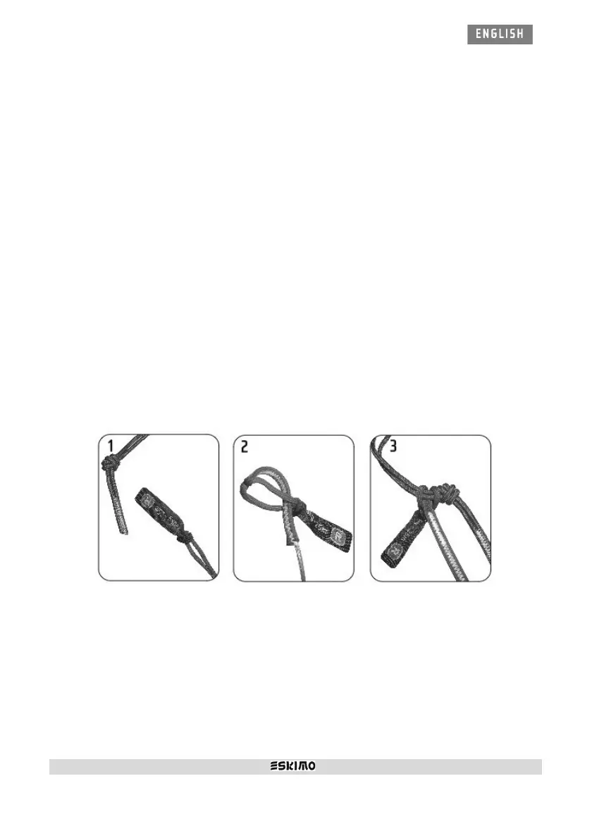 Connect the loop with the label to the pigtails of the kite (pict 3). This label allows you to disconnect