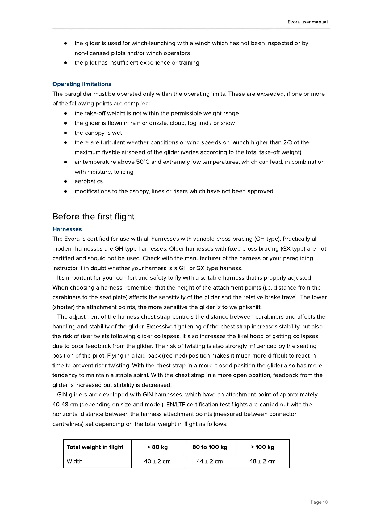 The paraglider must be operated only within the operating limits. These are exceeded, if one or more