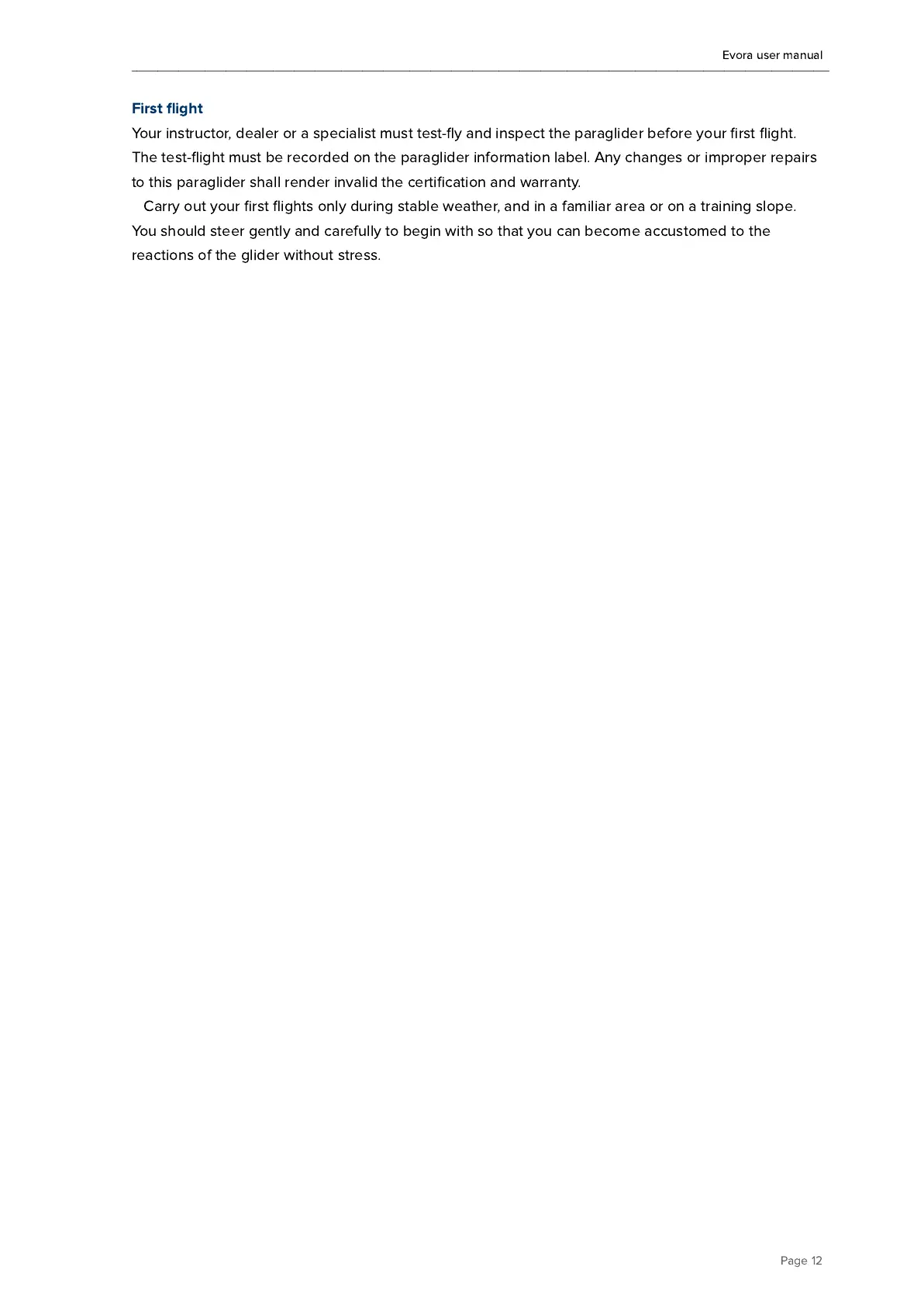 The test-flight must be recorded on the paraglider information label. Any changes or improper repairs