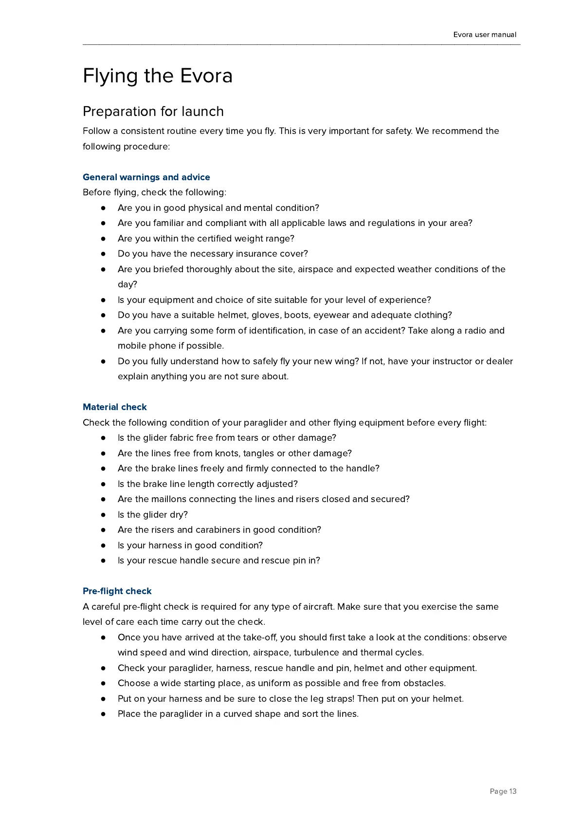 Check the following condition of your paraglider and other flying equipment before every flight: