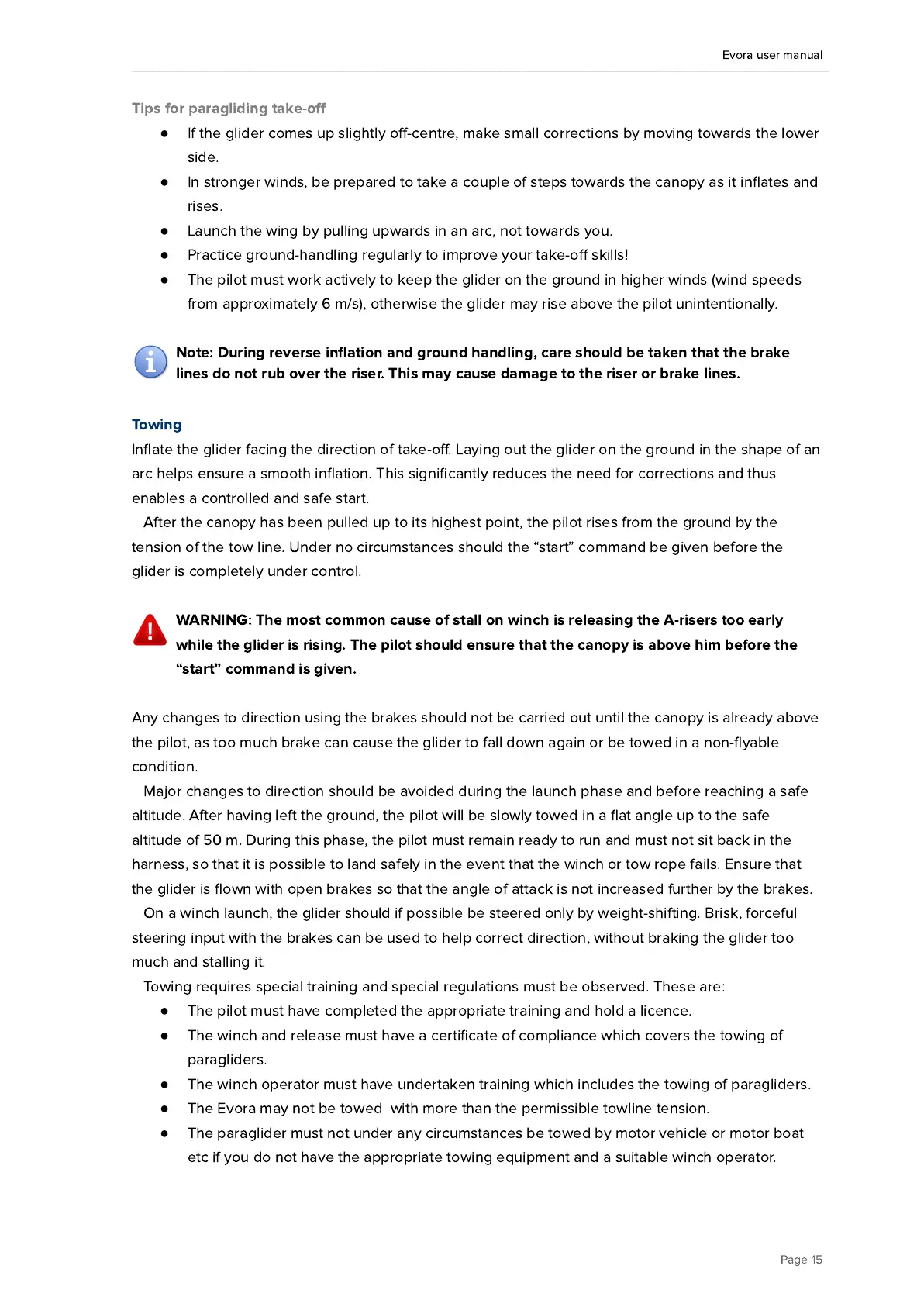 The paraglider must not under any circumstances be towed by motor vehicle or motor boat