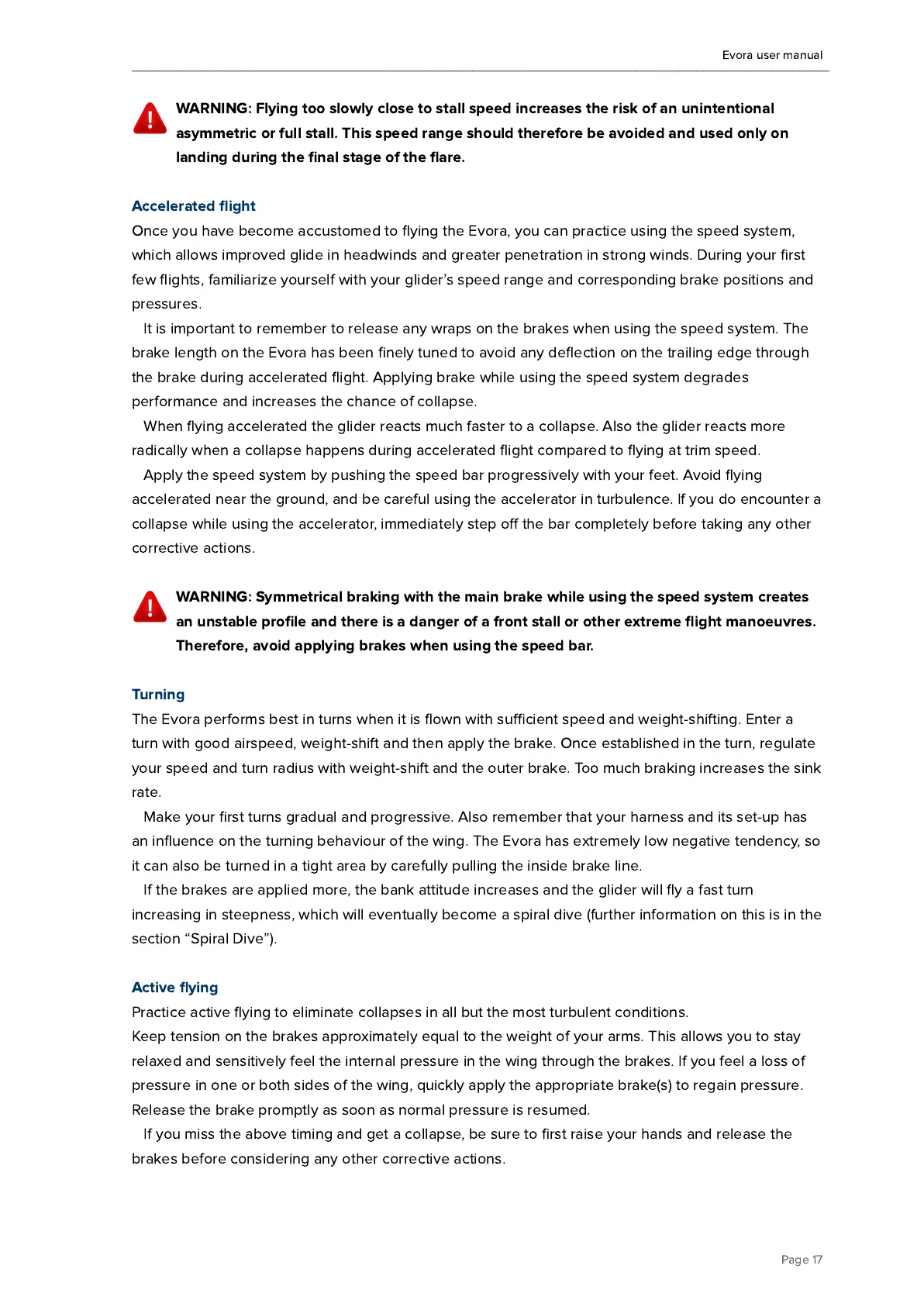 the brake during accelerated flight. Applying brake while using the speed system degrades