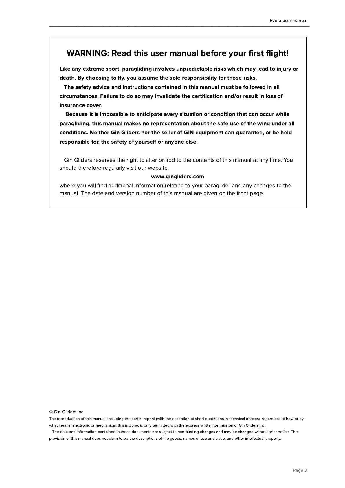 Gin Gliders reserves the right to alter or add to the contents of this manual at any time. You