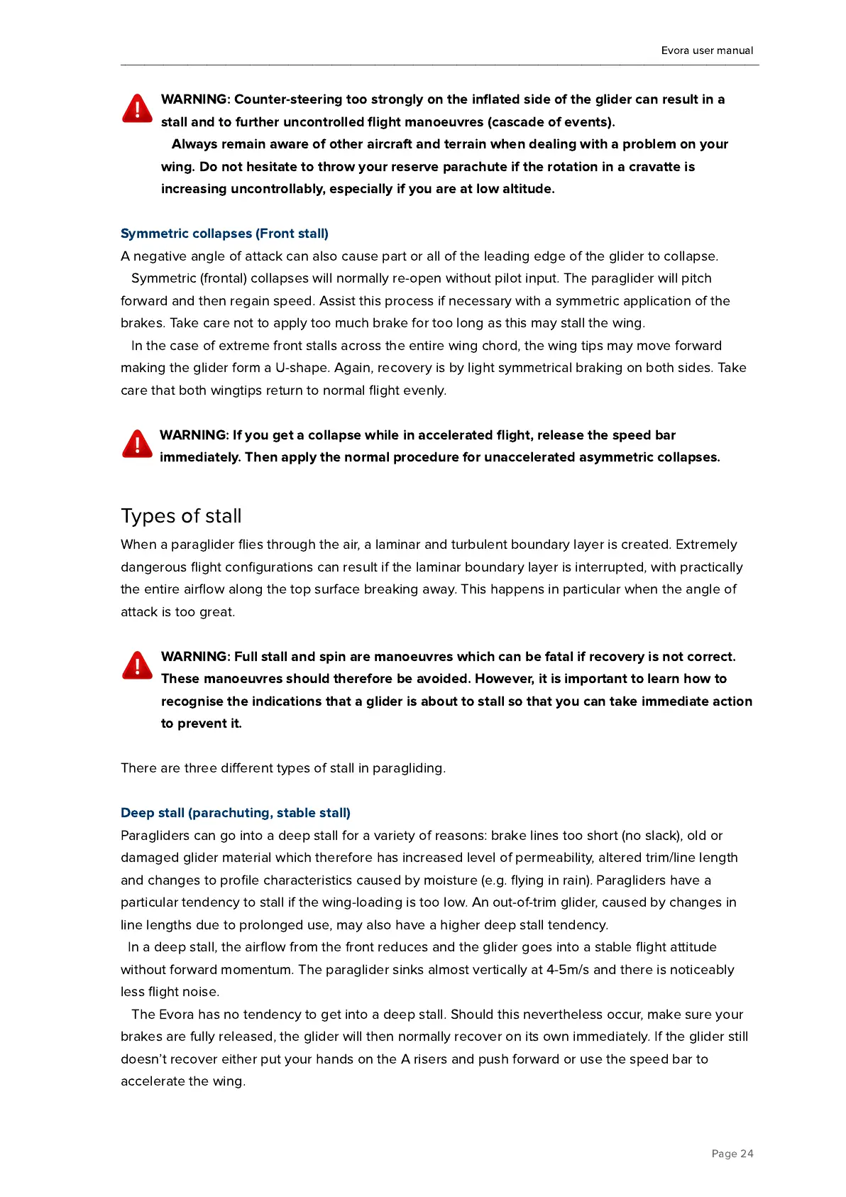 brakes are fully released, the glider will then normally recover on its own immediately. If the glider still