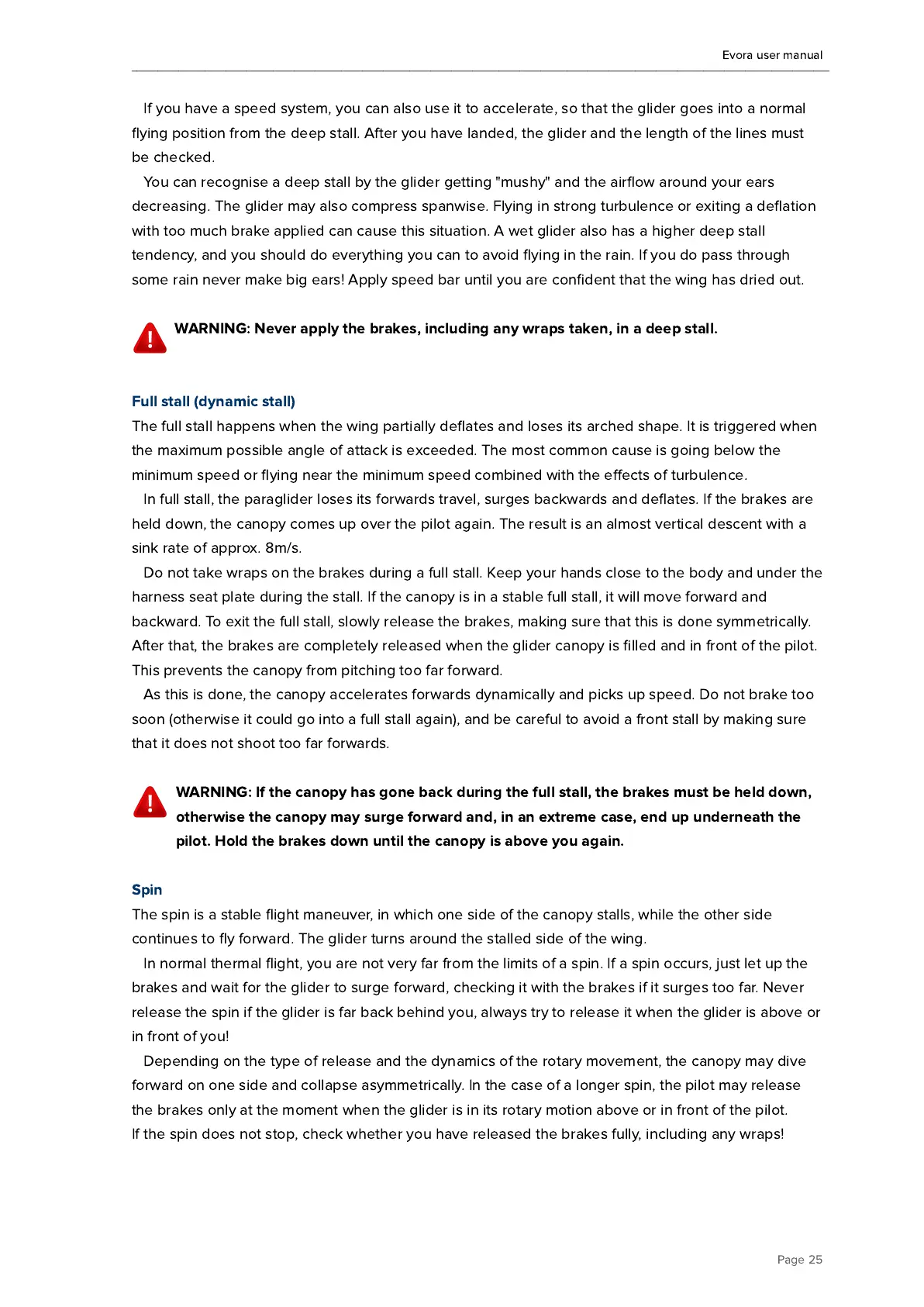 backward. To exit the full stall, slowly release the brakes, making sure that this is done symmetrically.