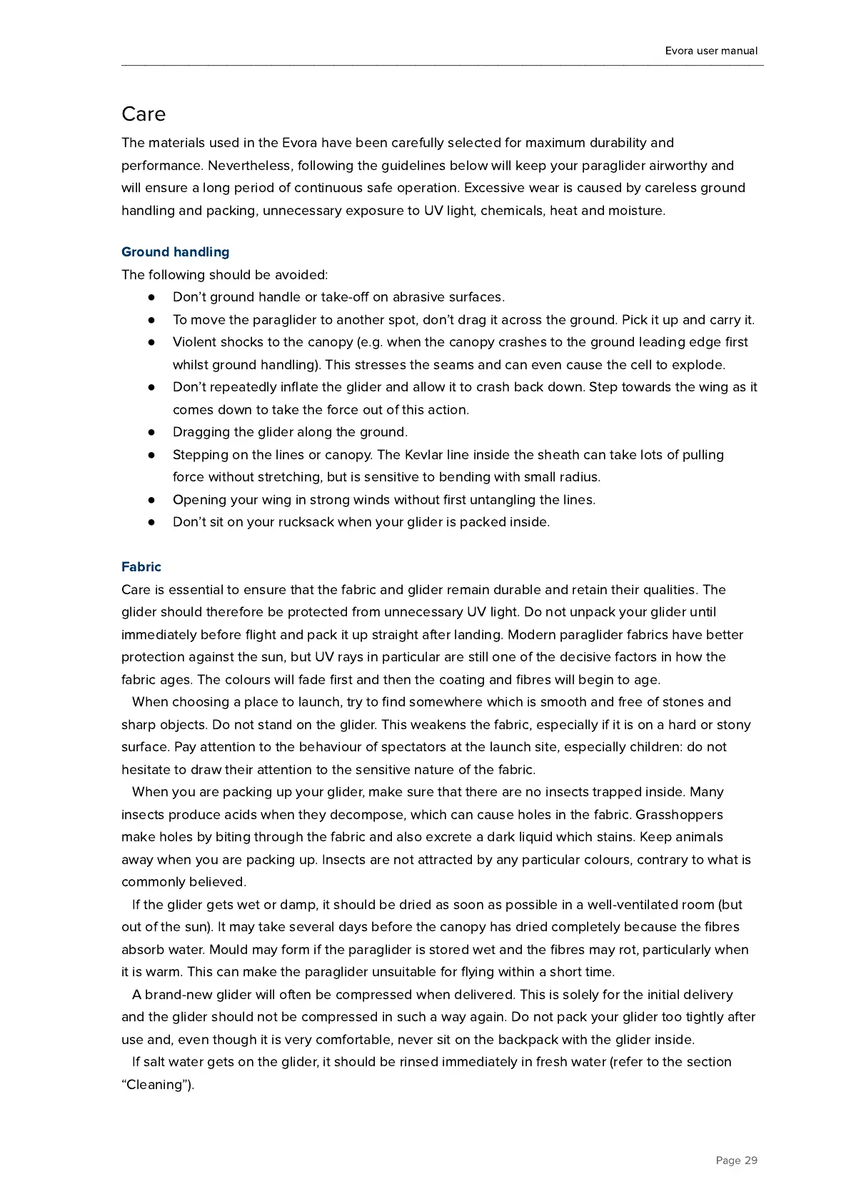 performance. Nevertheless, following the guidelines below will keep your paraglider airworthy and