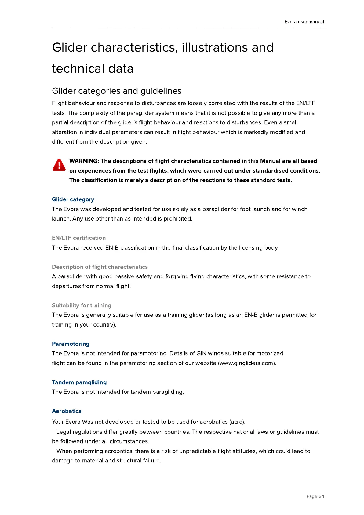 The Evora is generally suitable for use as a training glider (as long as an EN-B glider is permitted for