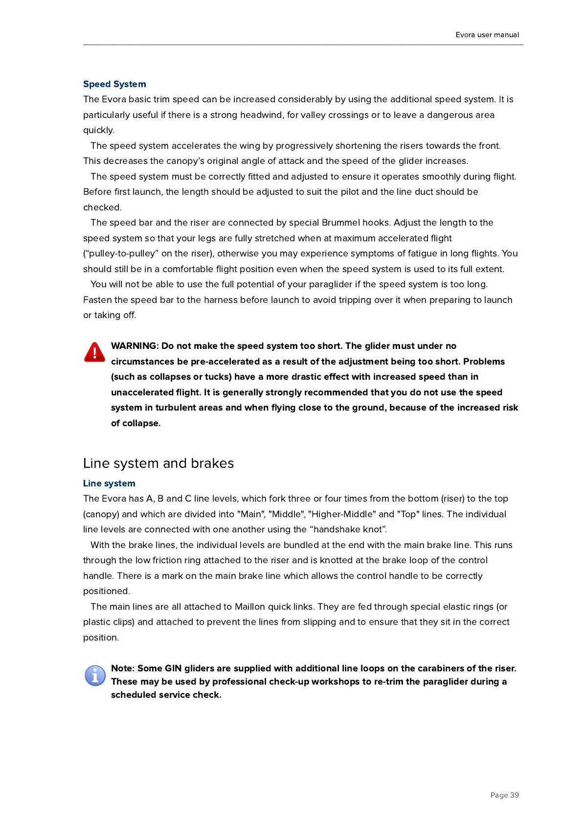 You will not be able to use the full potential of your paraglider if the speed system is too long.