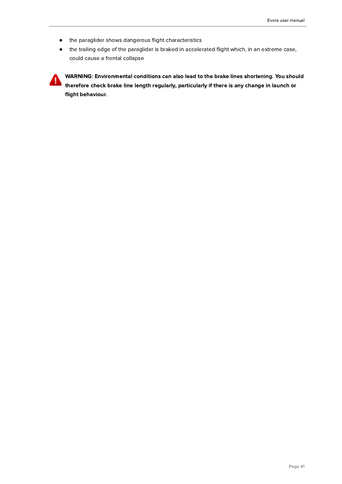 the paraglider shows dangerous flight characteristics