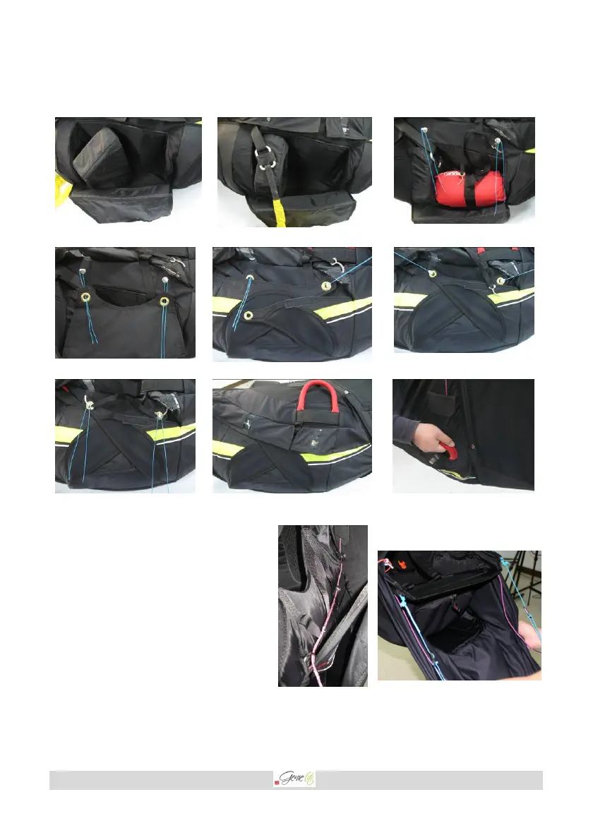 Connect the elastic cords from side loops of