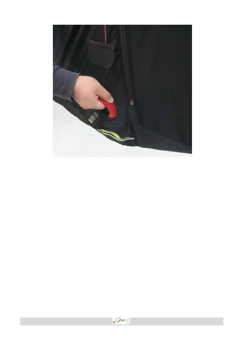 Pull the handle firmly outwards and upwards to release the deployment bag from the harness