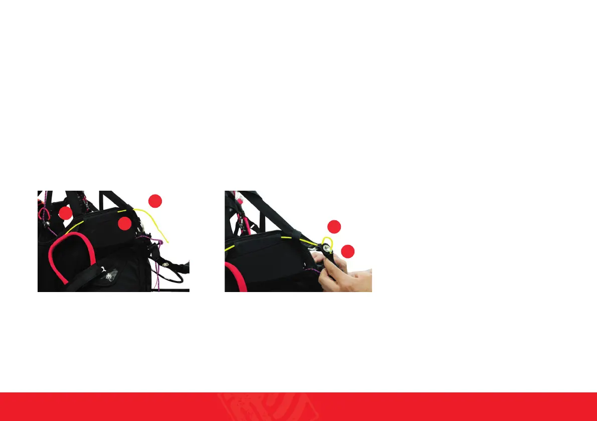 the seat, and the cord loop that is protruding through the footstrap rings. Finally, tuck the plastic
