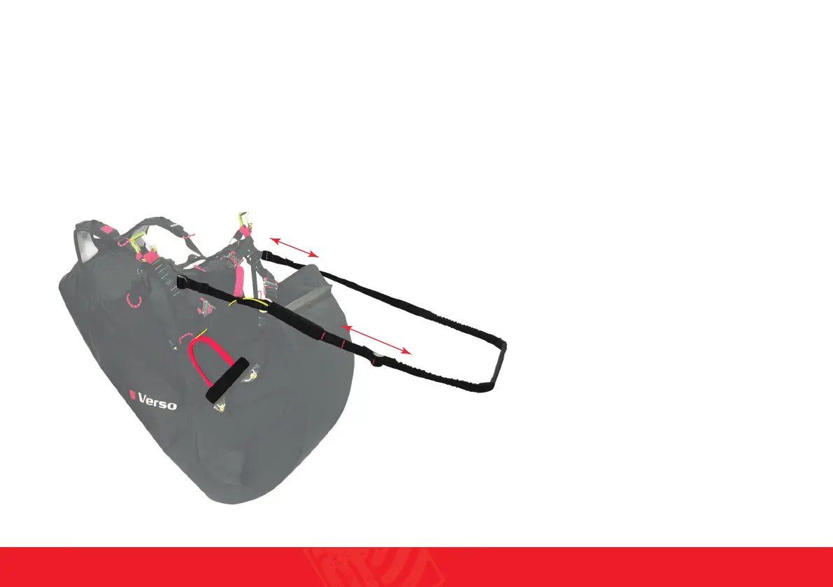 then on the opposite side of the harness, adjust the length of the footstap to the same red strip.