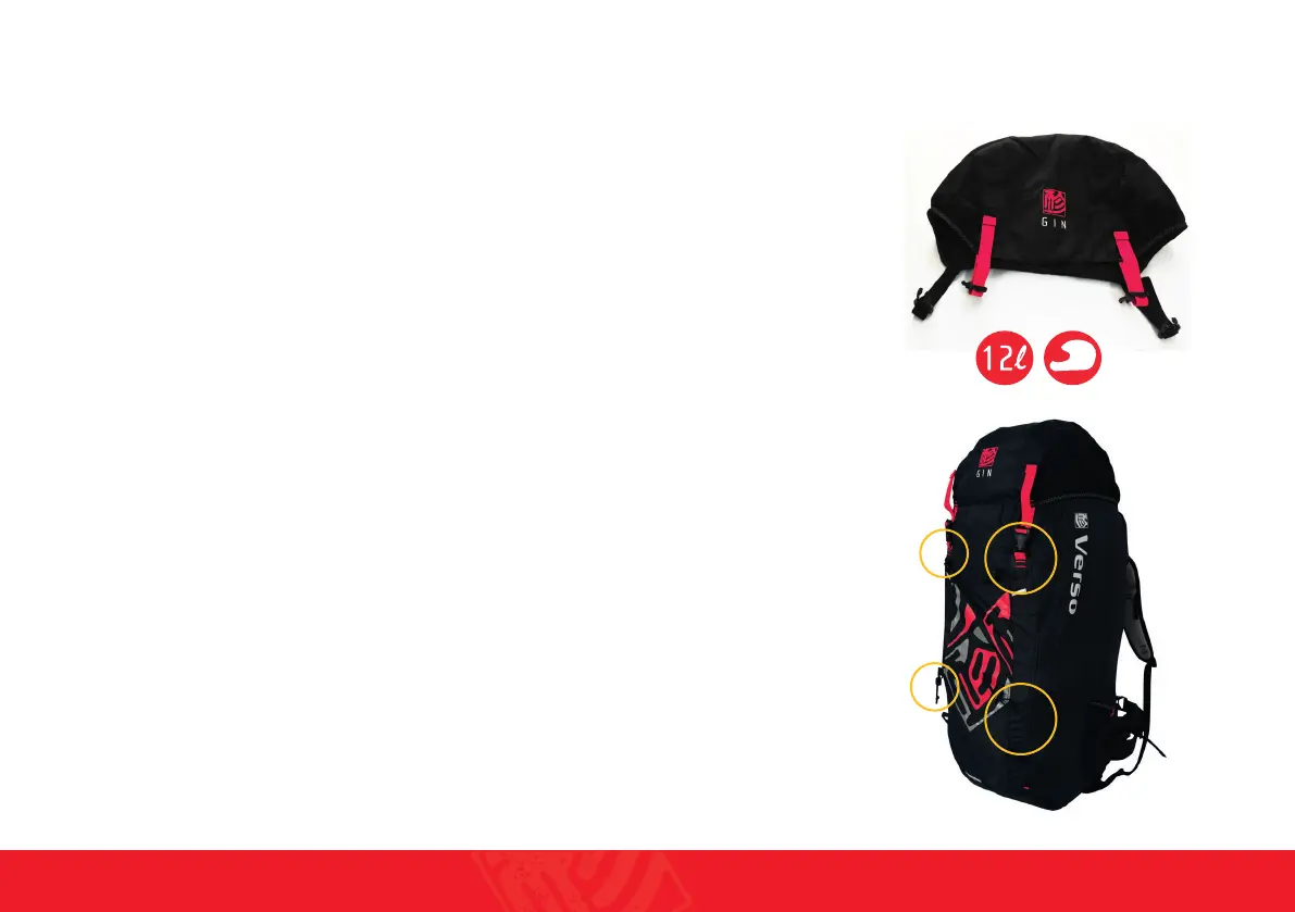 harness into the rucksack. Ensure that the lateral flaps supporting the seat are folded inwards, to