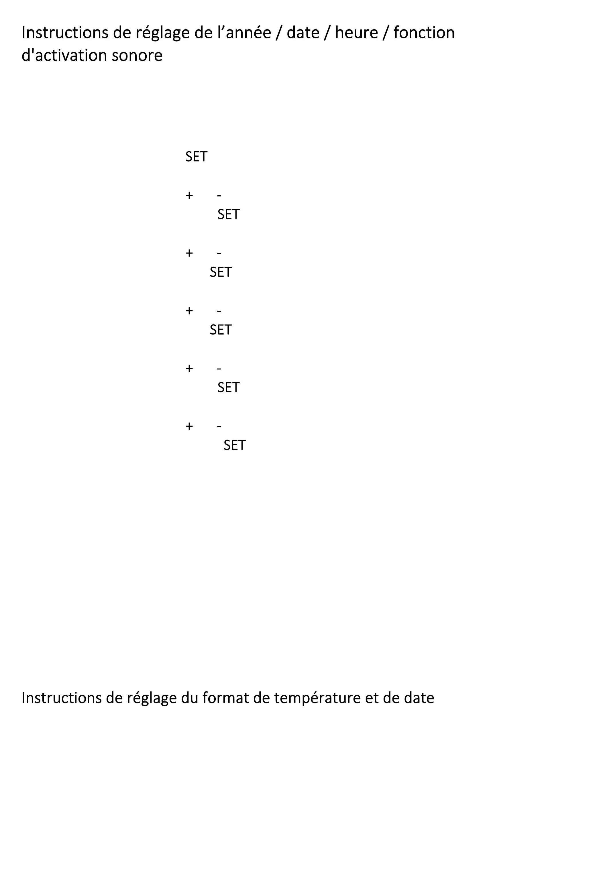7. Appuyez sur le bouton + ou - pour sélectionner l'affichage du format 24H ou 12H, en