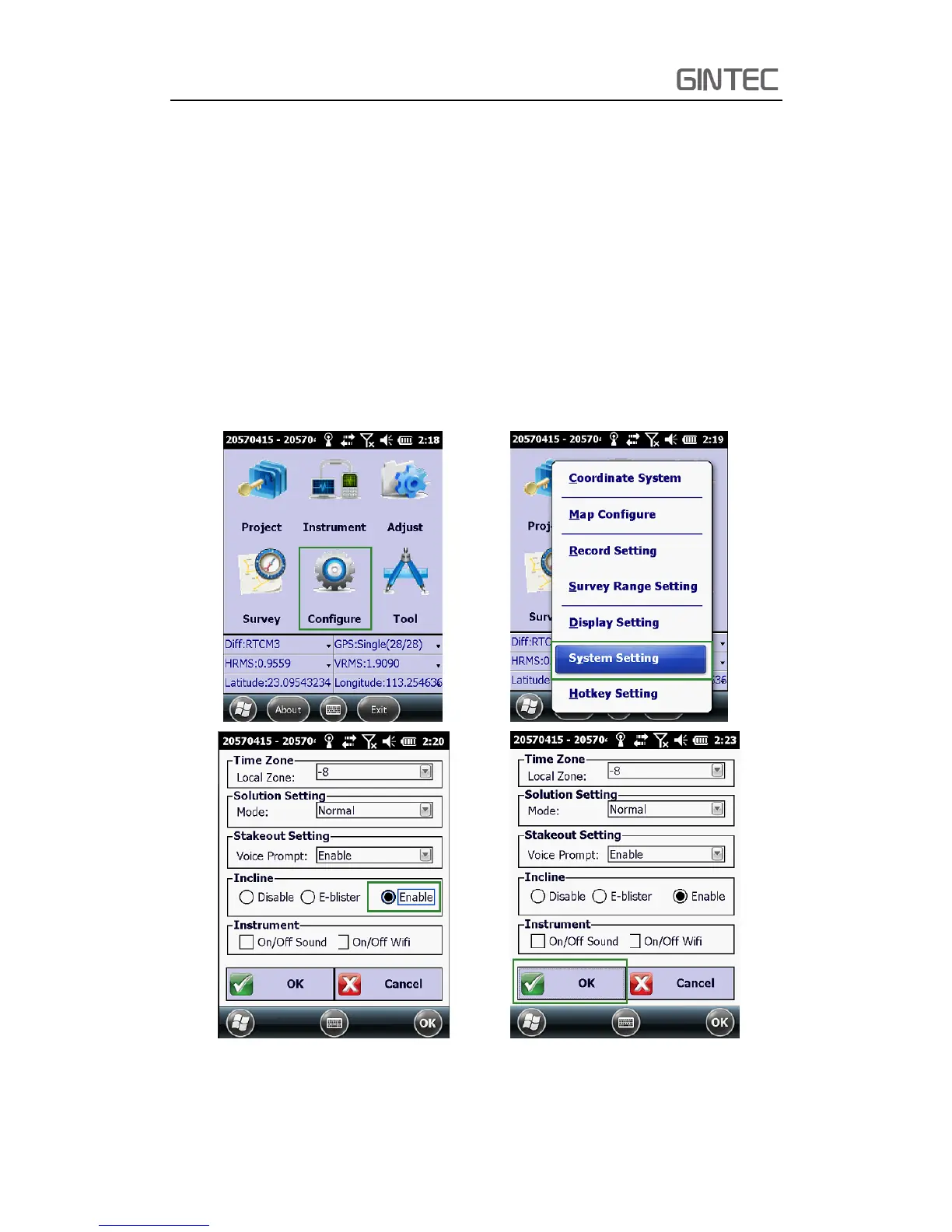 software. Then it’s “Sensor Calibrate”, sensor calibrate contains “Horizontal”, “Azimuth”