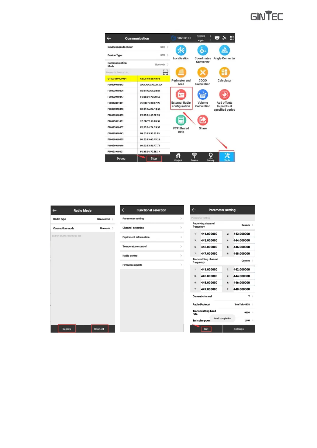 “Connection mode” to be “Bluetooth”, then search TRU35 radio and connect it.(Pairing