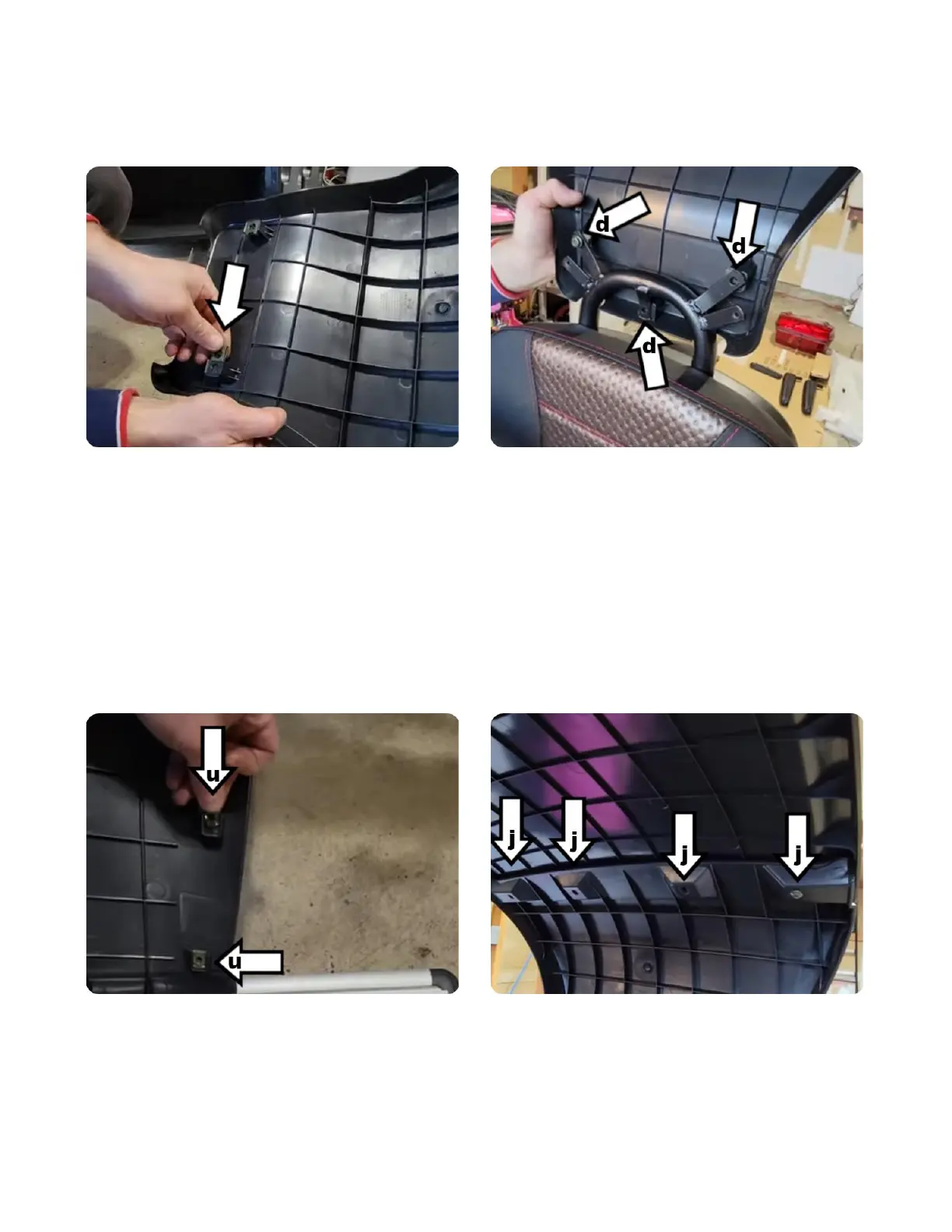 attaches to the previously installed rear top. Insert the smaller clips (u)