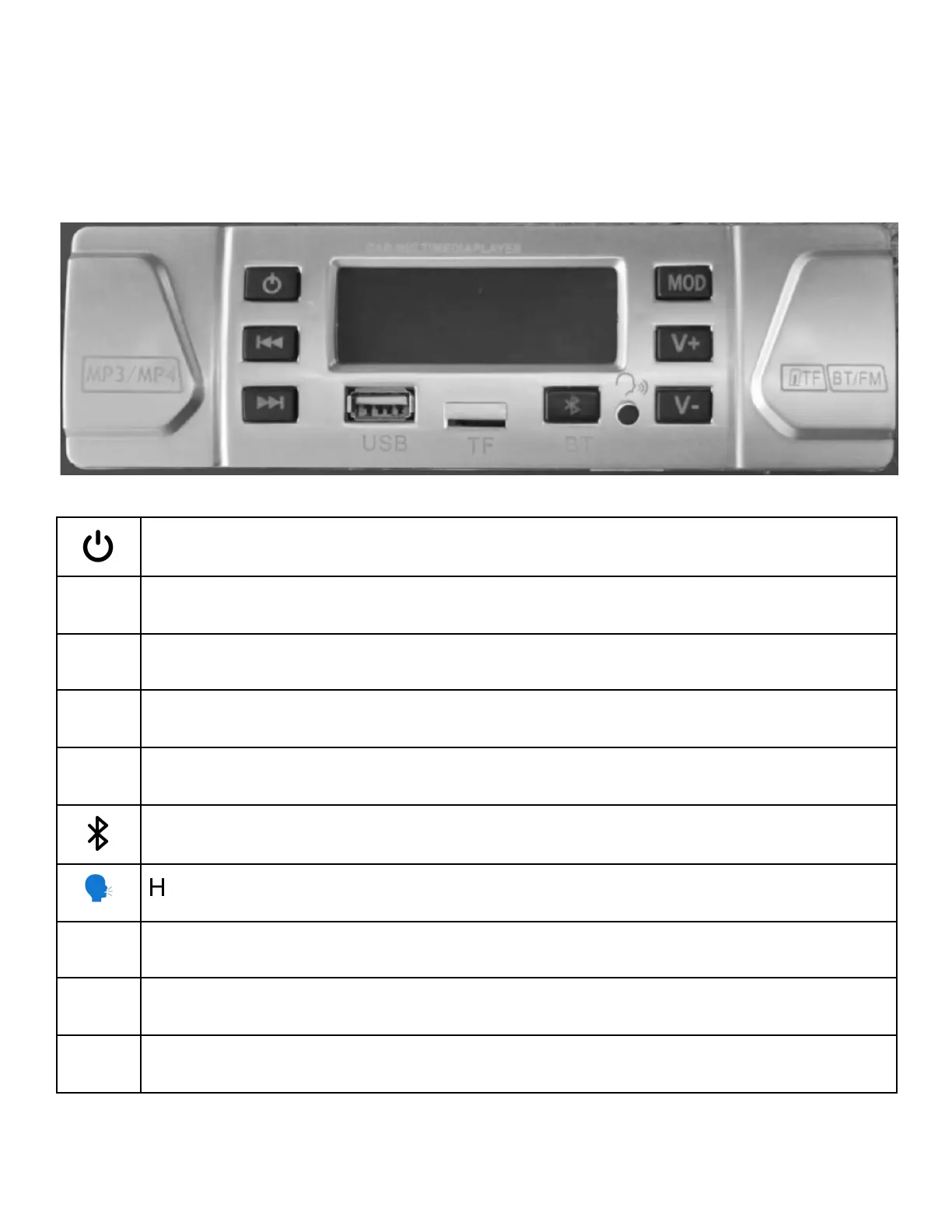 Cycles through modes FM Radio, MP3, MP4, Bluetooth