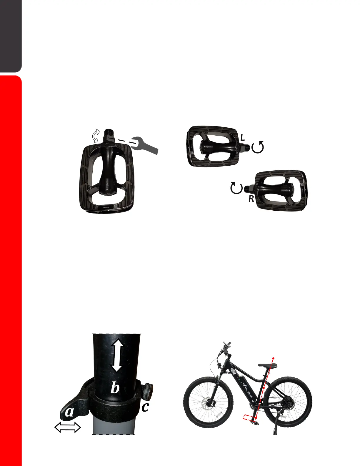for the left pedal and R for the right pedal. Thread each pedal into the hole