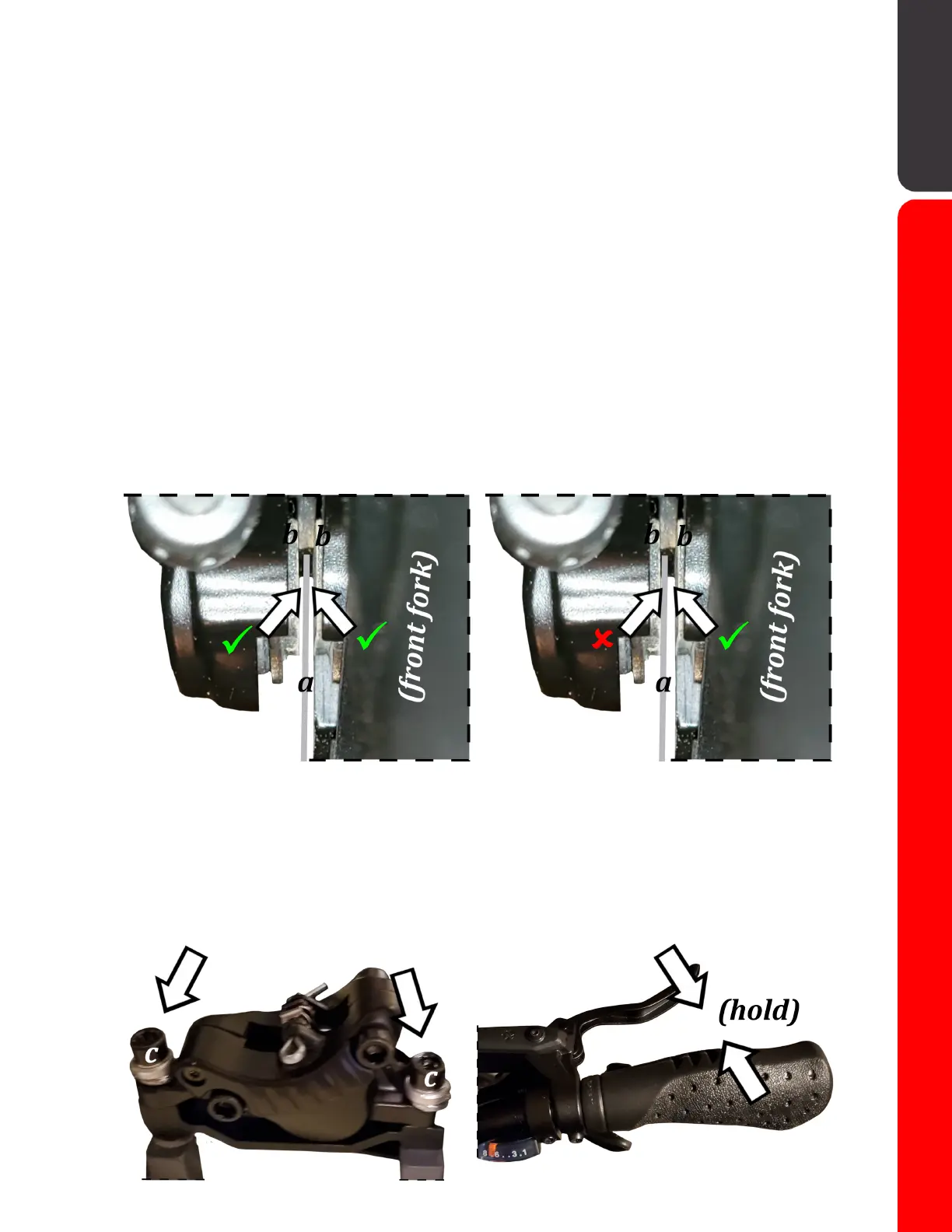by loosening the caliper mounting bolts(c), squeeze and hold the brake