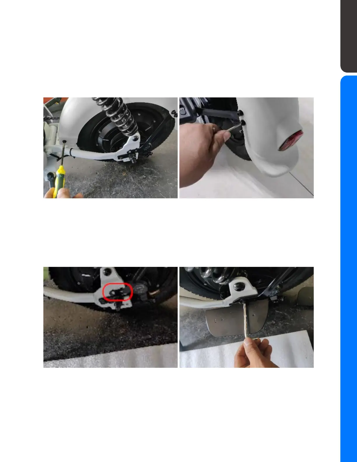 Begin and position the rear fender over the rear wheel. Secure the front of
