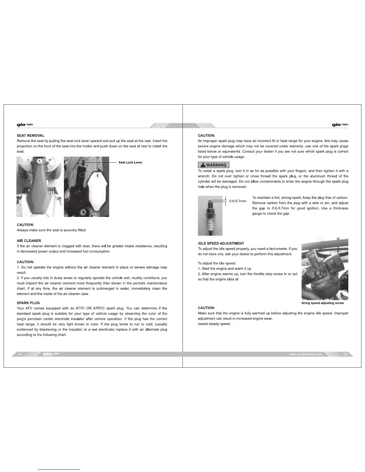 gio Blazer 125 - SEAT REMOVAL AND AIR CLEANER; SPARK PLUG AND IDLE SPEED ADJUSTMENT
