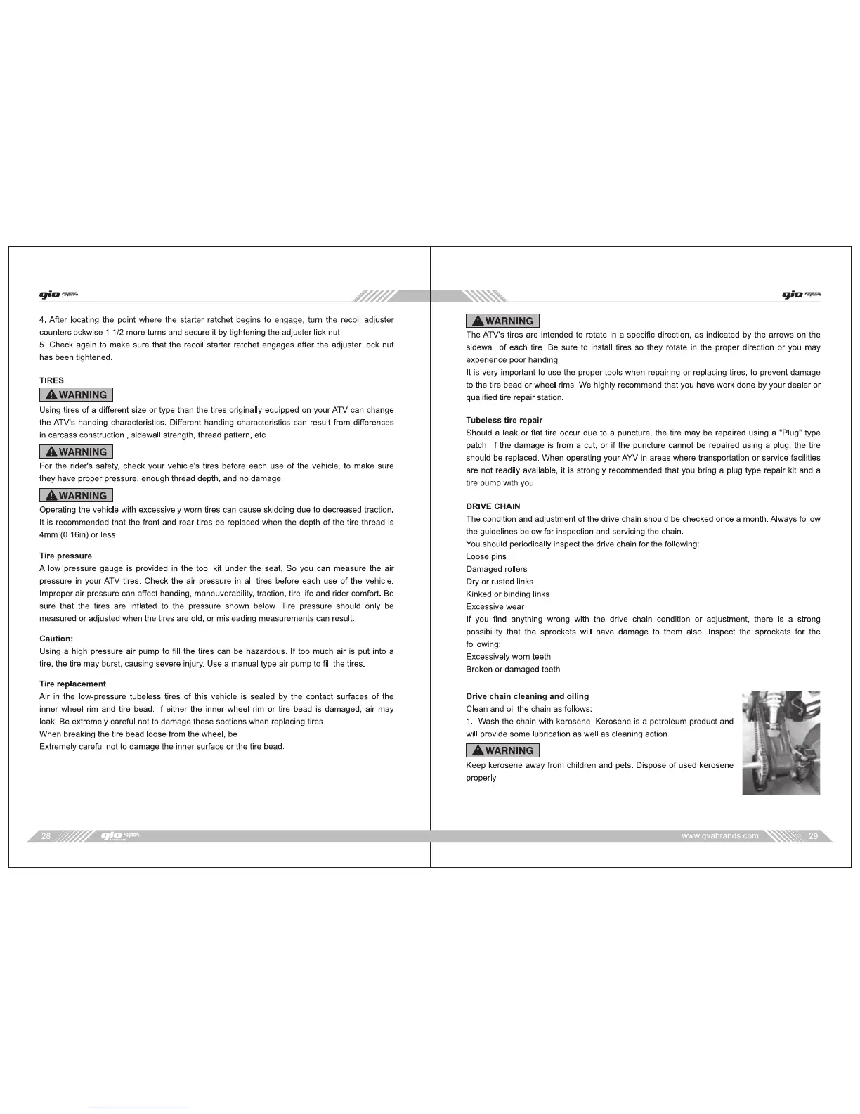 gio Blazer 125 - TIRES AND DRIVE CHAIN MAINTENANCE; TIRE CARE AND REPLACEMENT
