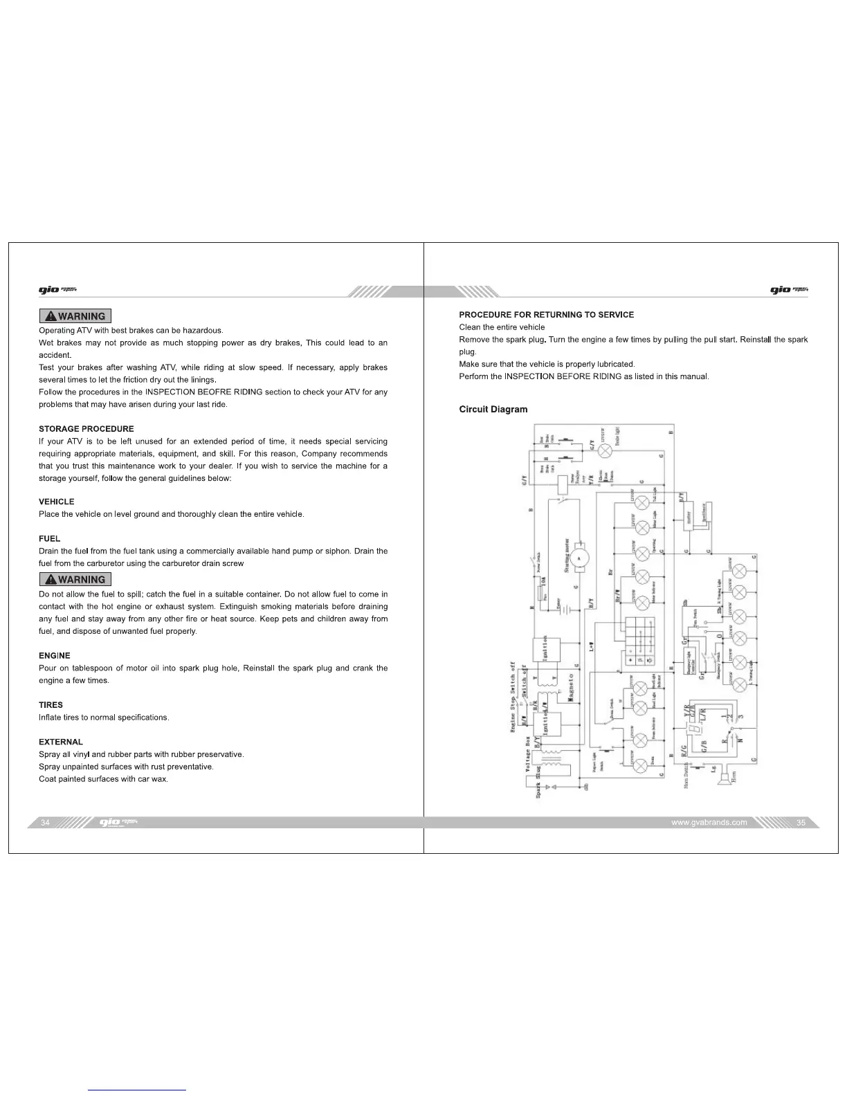 gio Blazer 125 - STORAGE AND RETURN TO SERVICE PROCEDURES; CIRCUIT DIAGRAM
