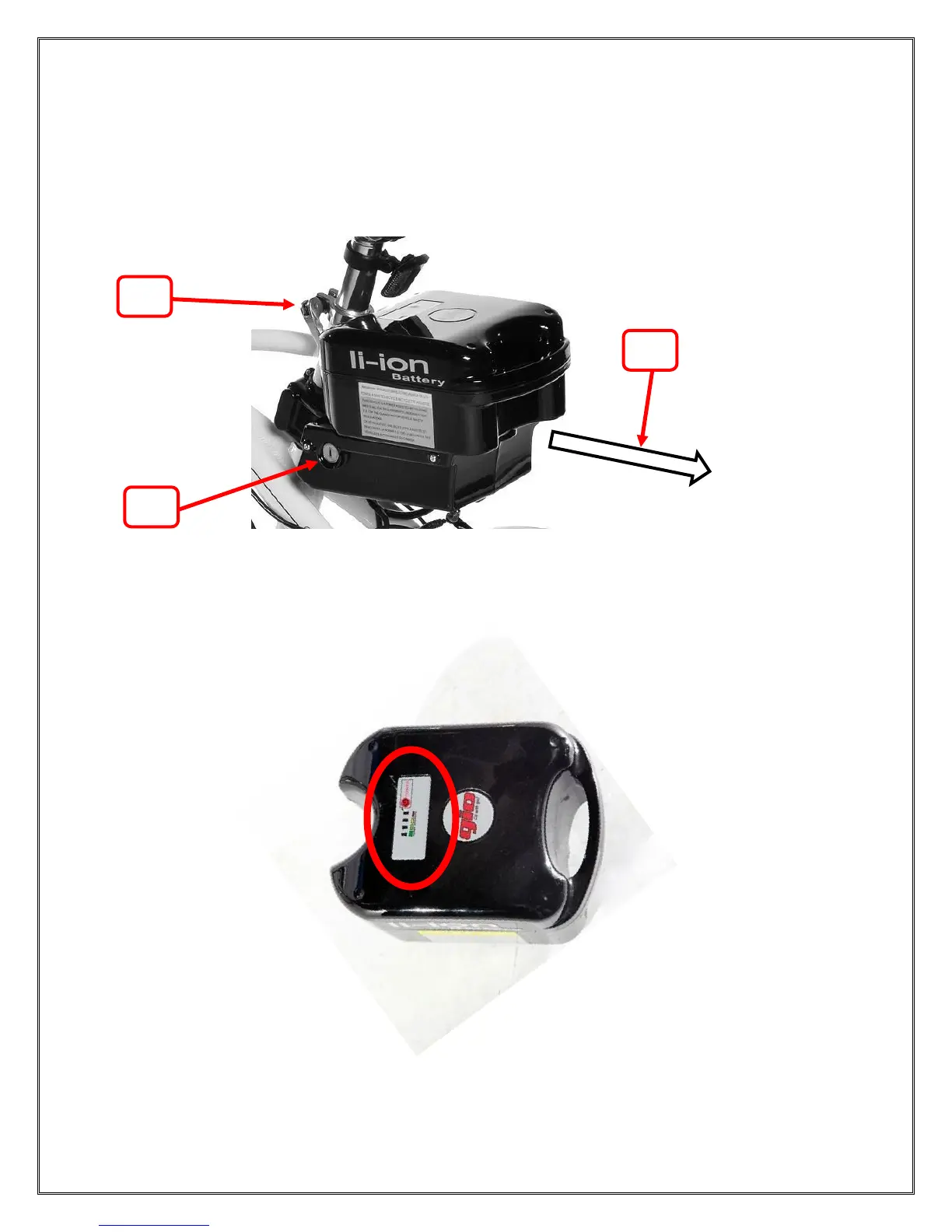 to the battery meter. Note, fully charged battery will show 4 RED LED lights color and empty battery will