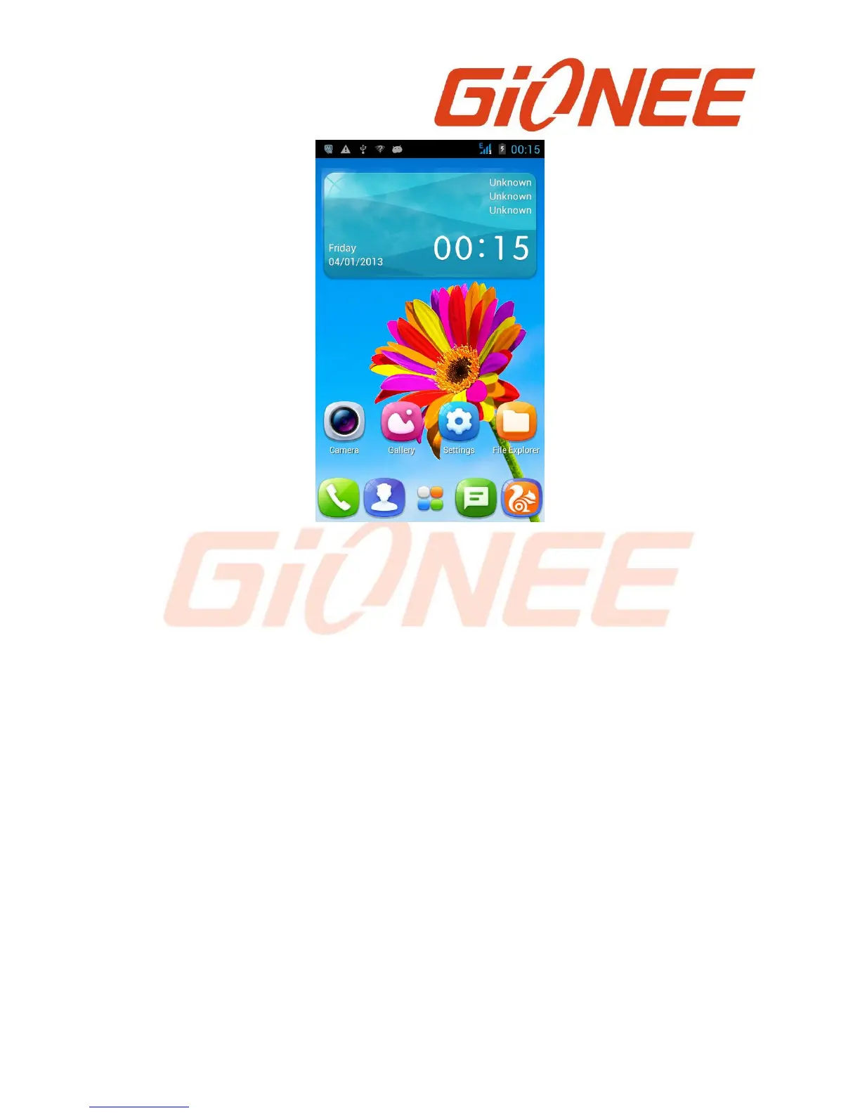 At the top of the screen, the Status bar displays the time, information about the status of