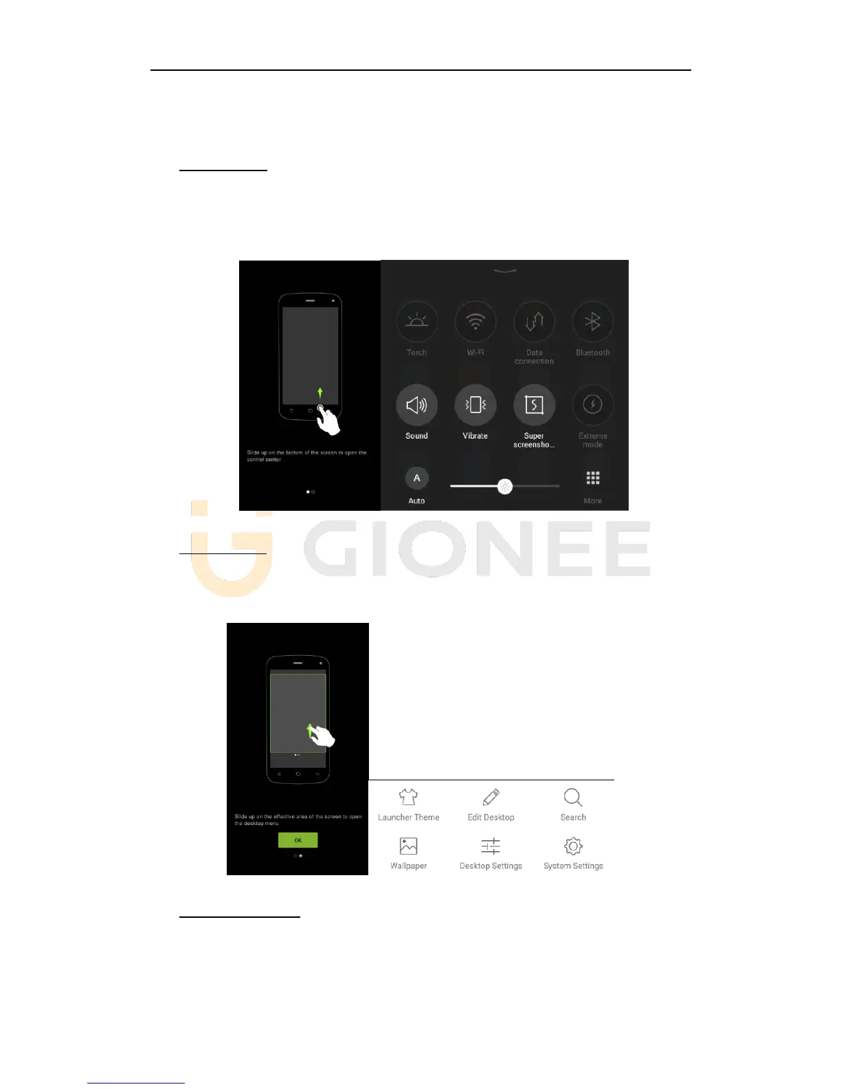 Slide up on the effective area of the screen to open the desktop menu. You can