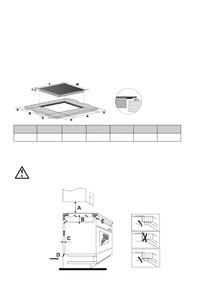 L(mm) W(mm) H(mm) D(mm) A(mm) B(mm) X(mm)