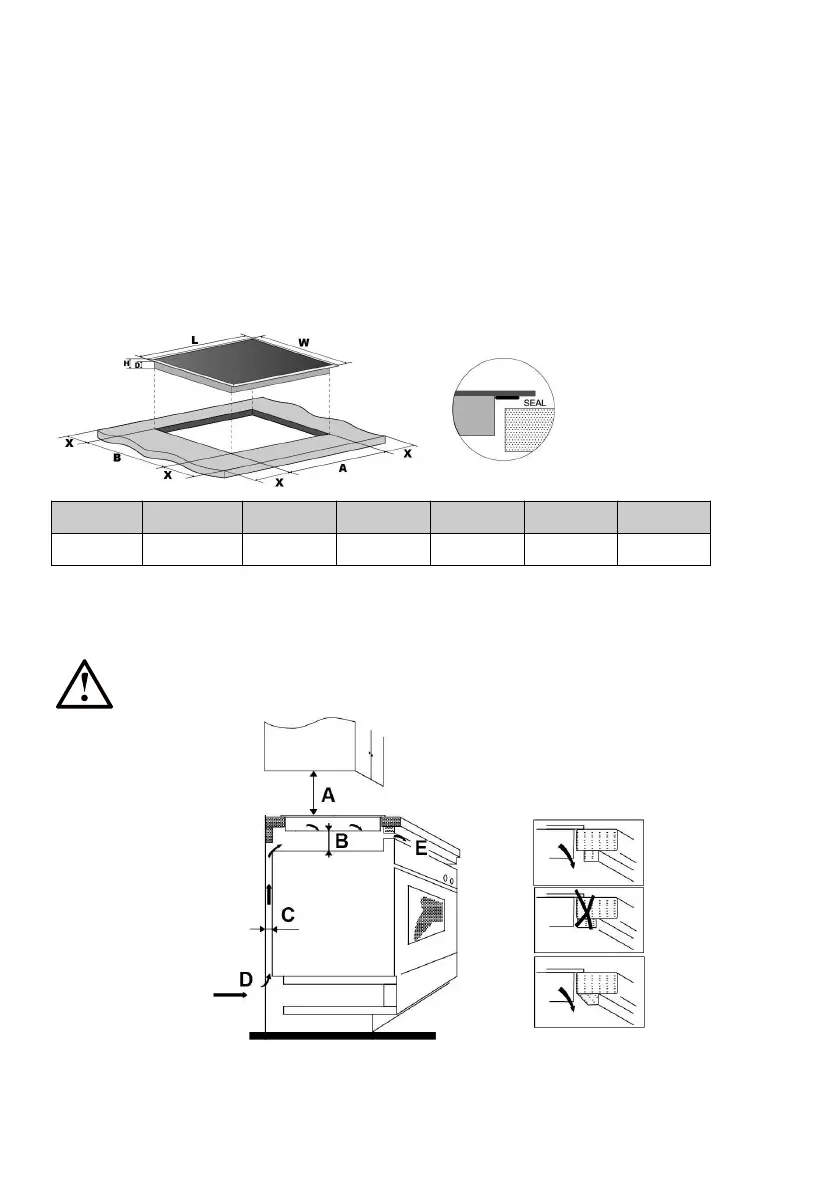 Schrank über der Heizplatte sollte mindestens 760 mm betragen.