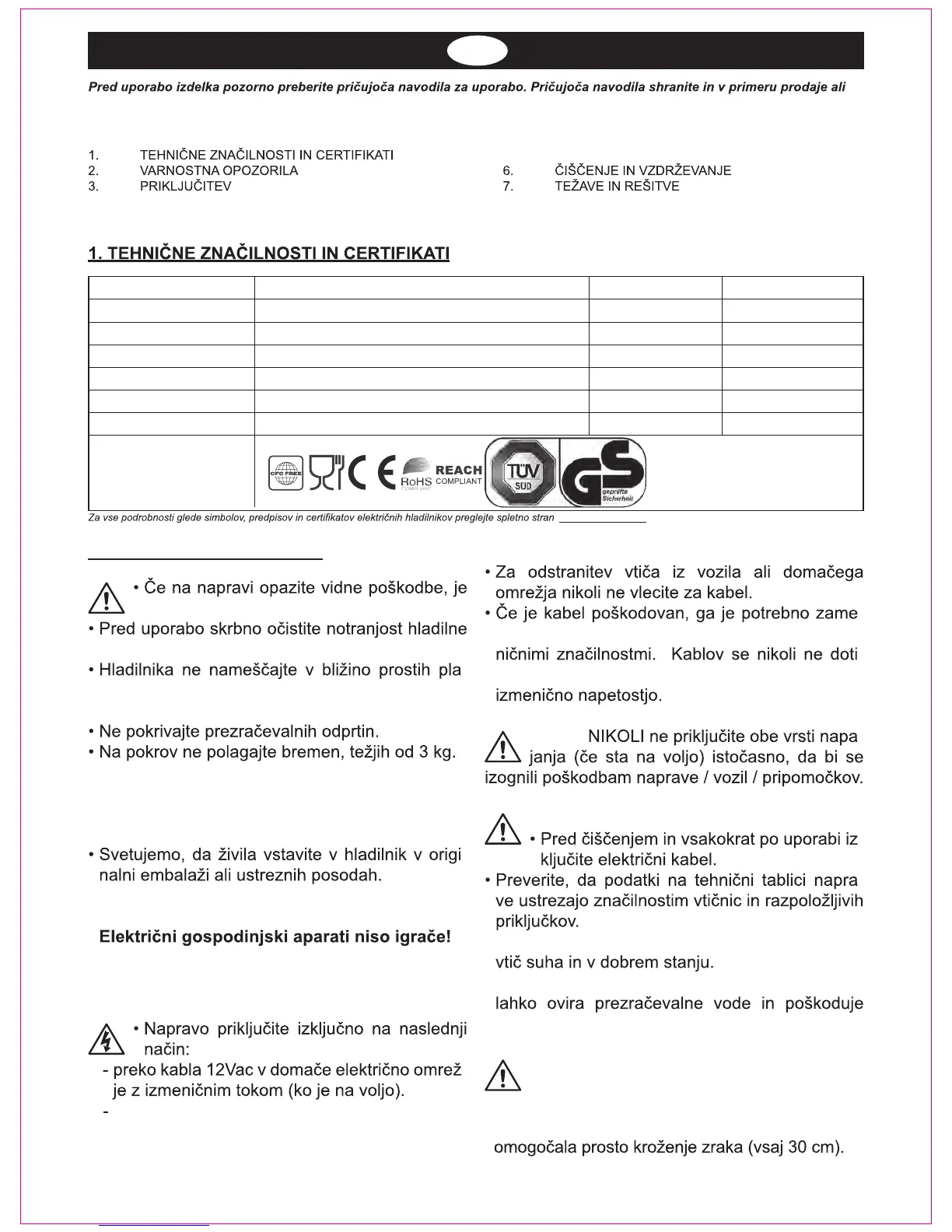• Hladilnik ni primeren za hranjenje korozivnih ali