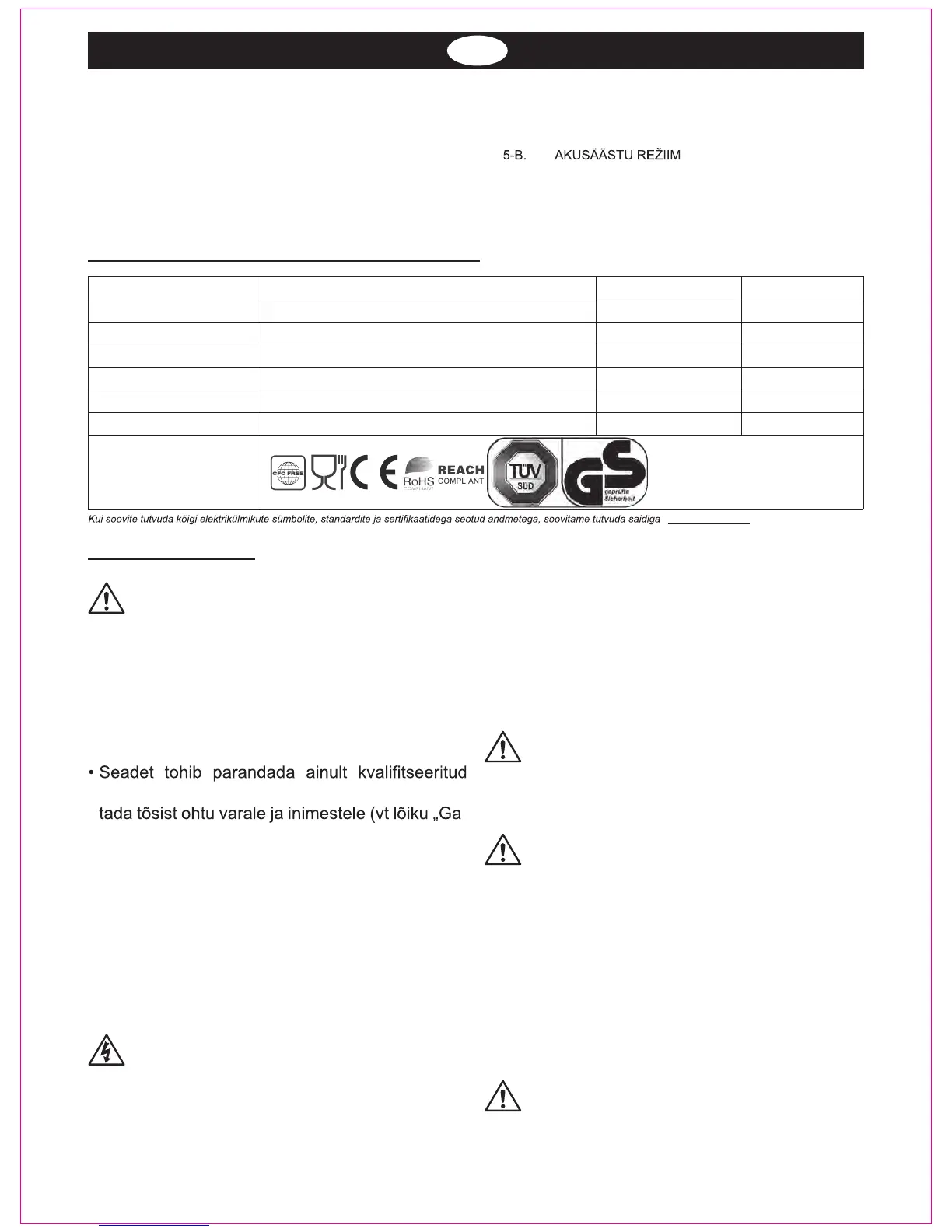2. OHUTUSNÕUDED 6. PUHASTUS JA HOOLDUS