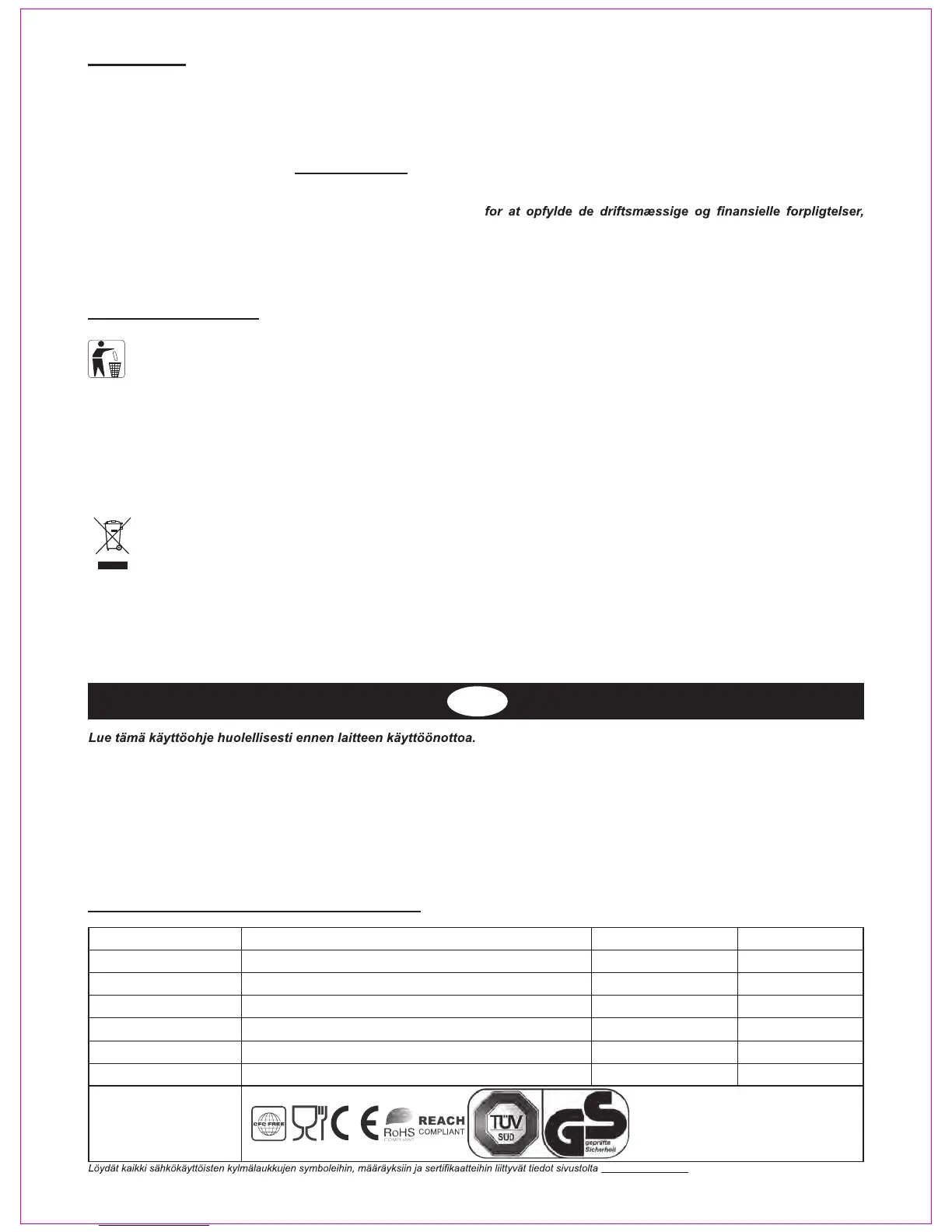 • Køleboksen er omfattet af en garanti, der gælder i 24 måneder